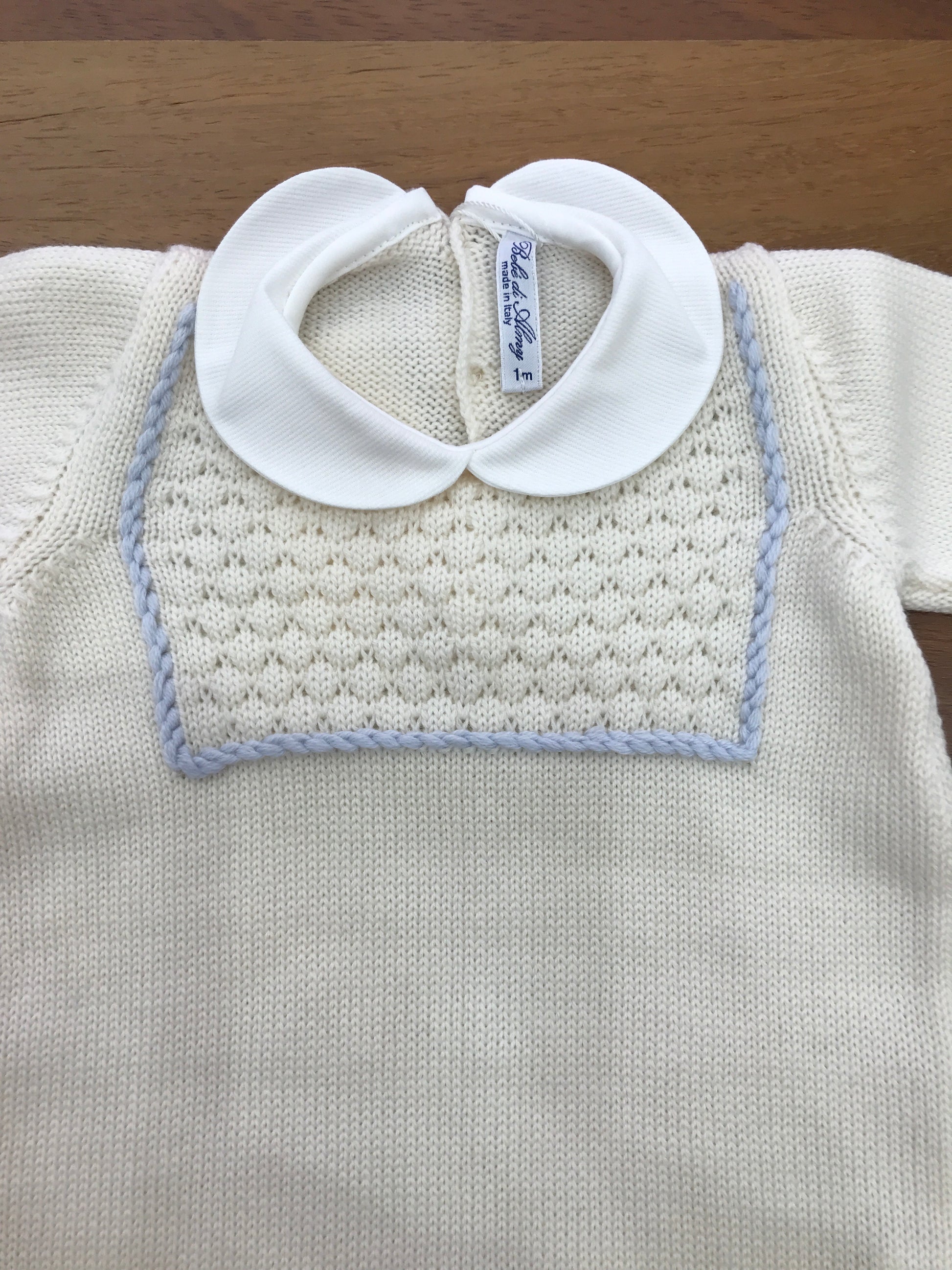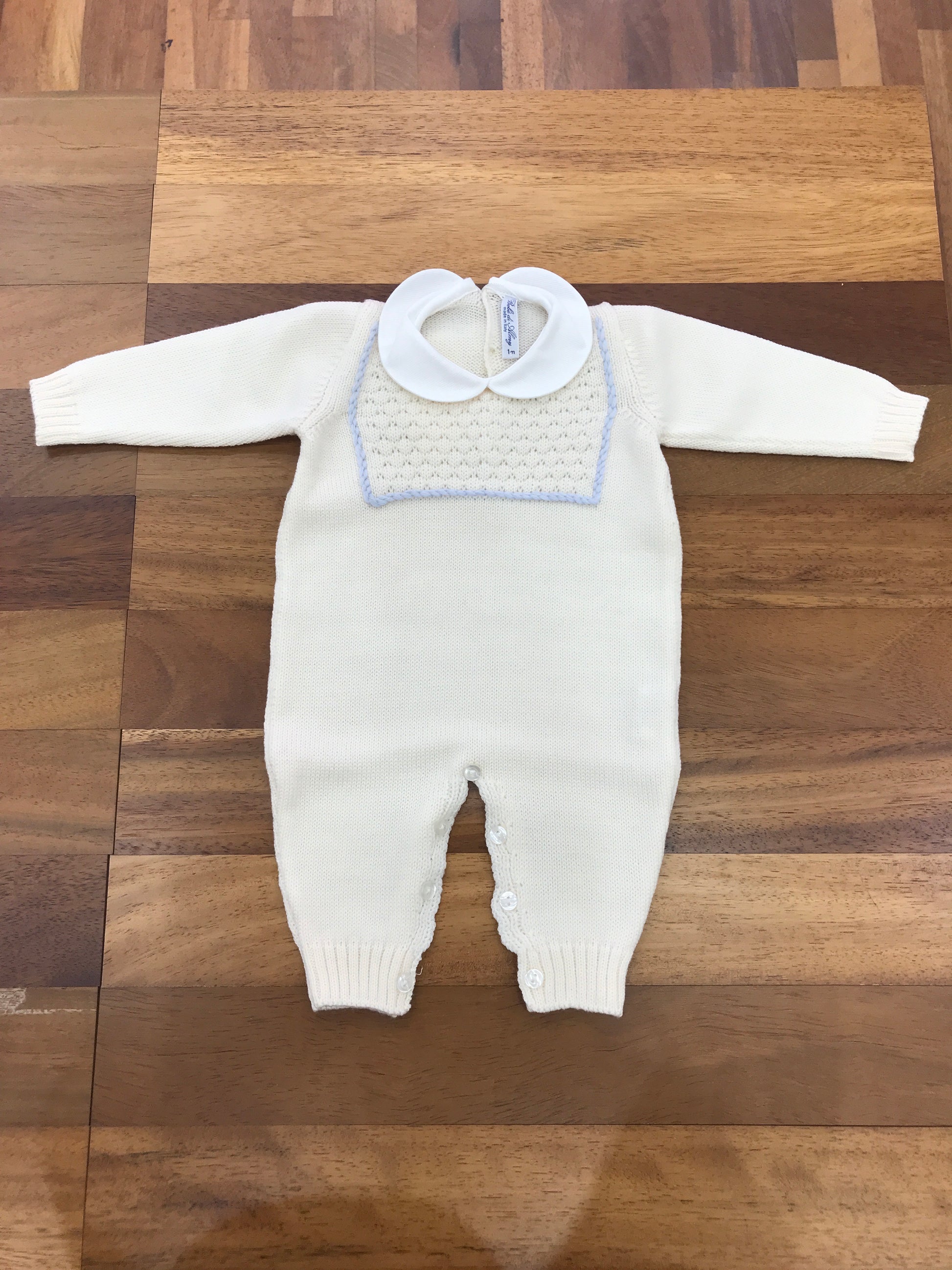 Questa tutina completa senza piedini presenta un colletto elegante e un ricamo decorativo sul davanti, ideale per garantire comfort e stile al tuo bebè.
