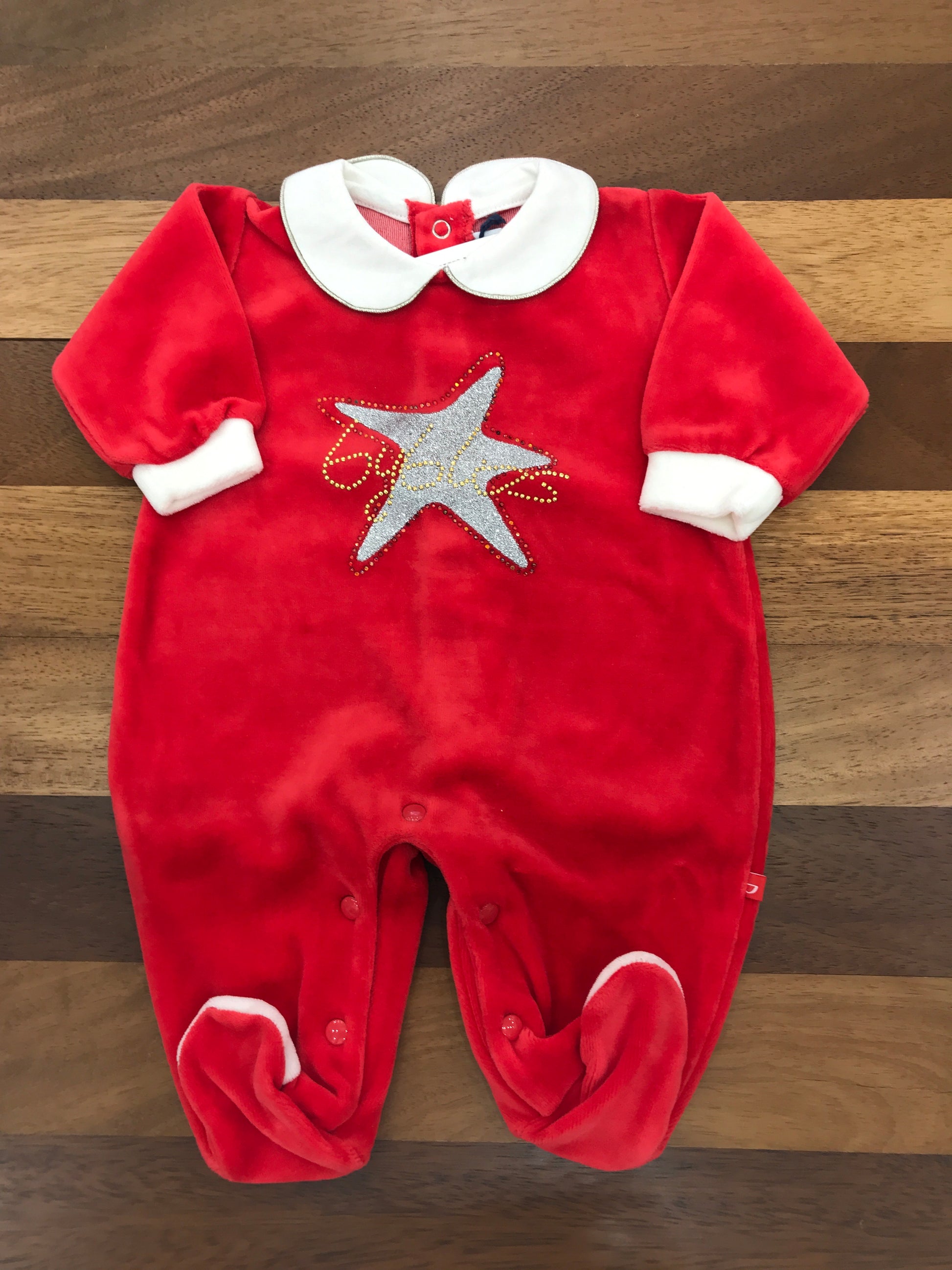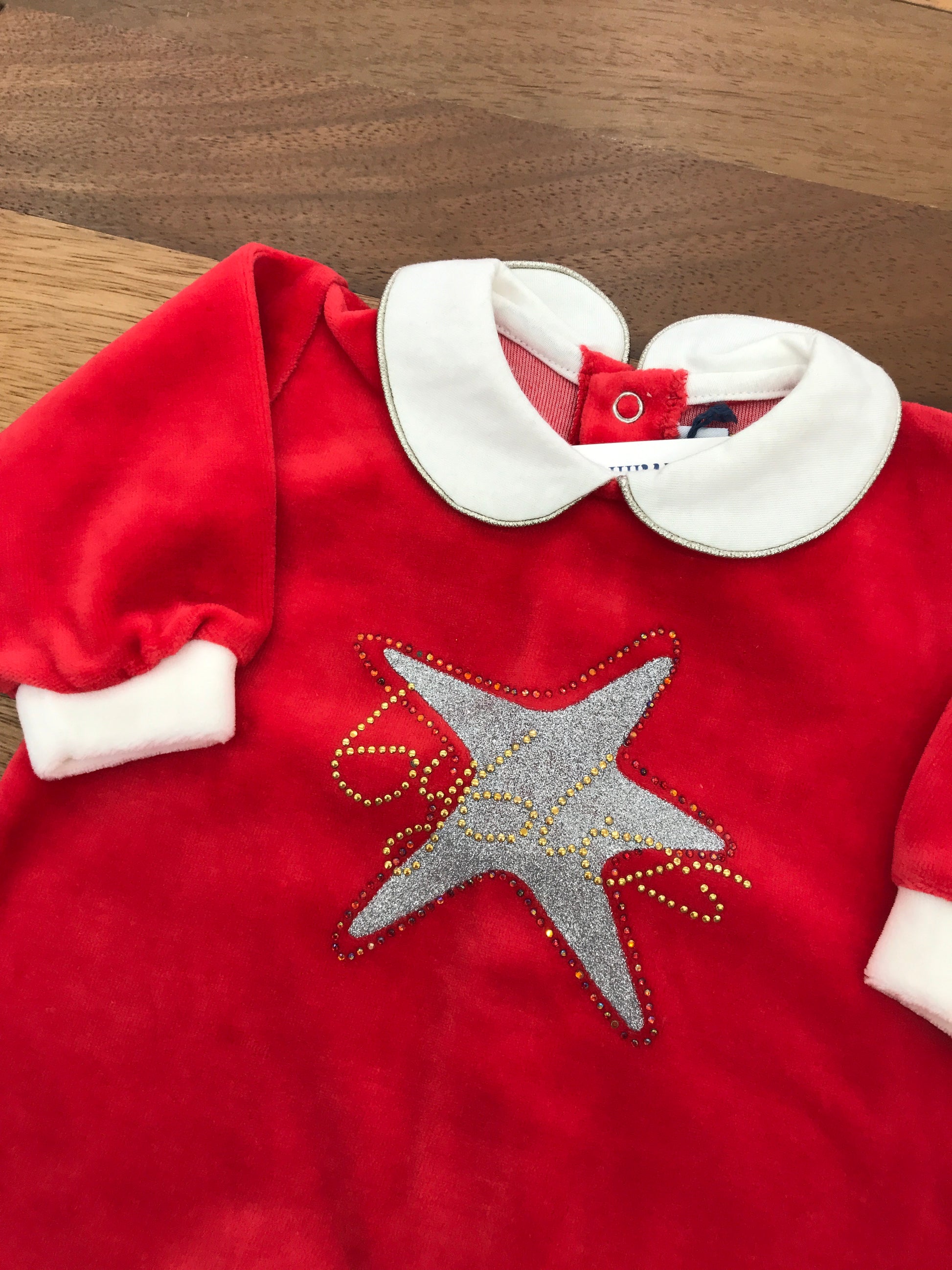 Tutina in ciniglia con stella glitterata al centro con collo tondo bianco