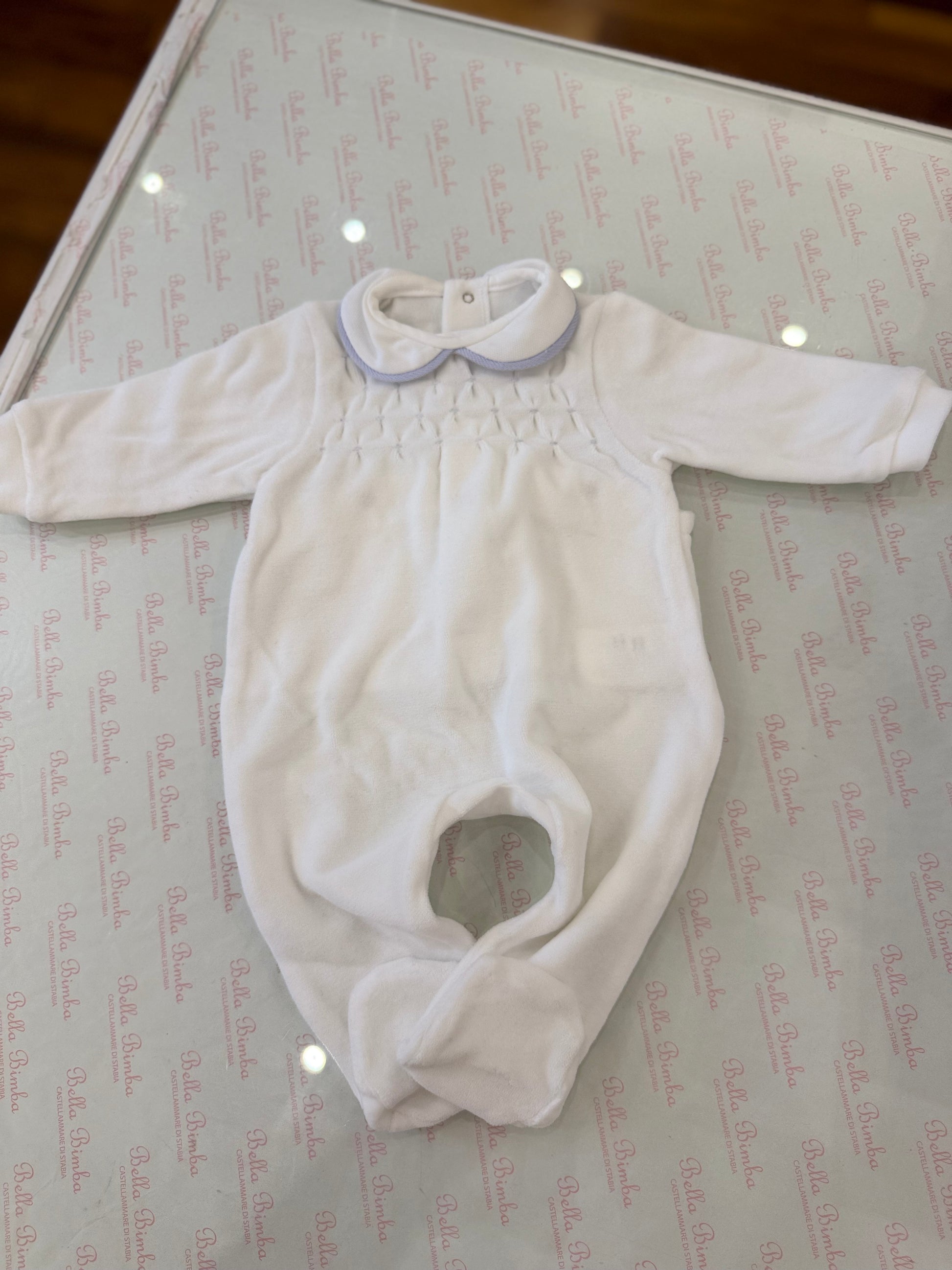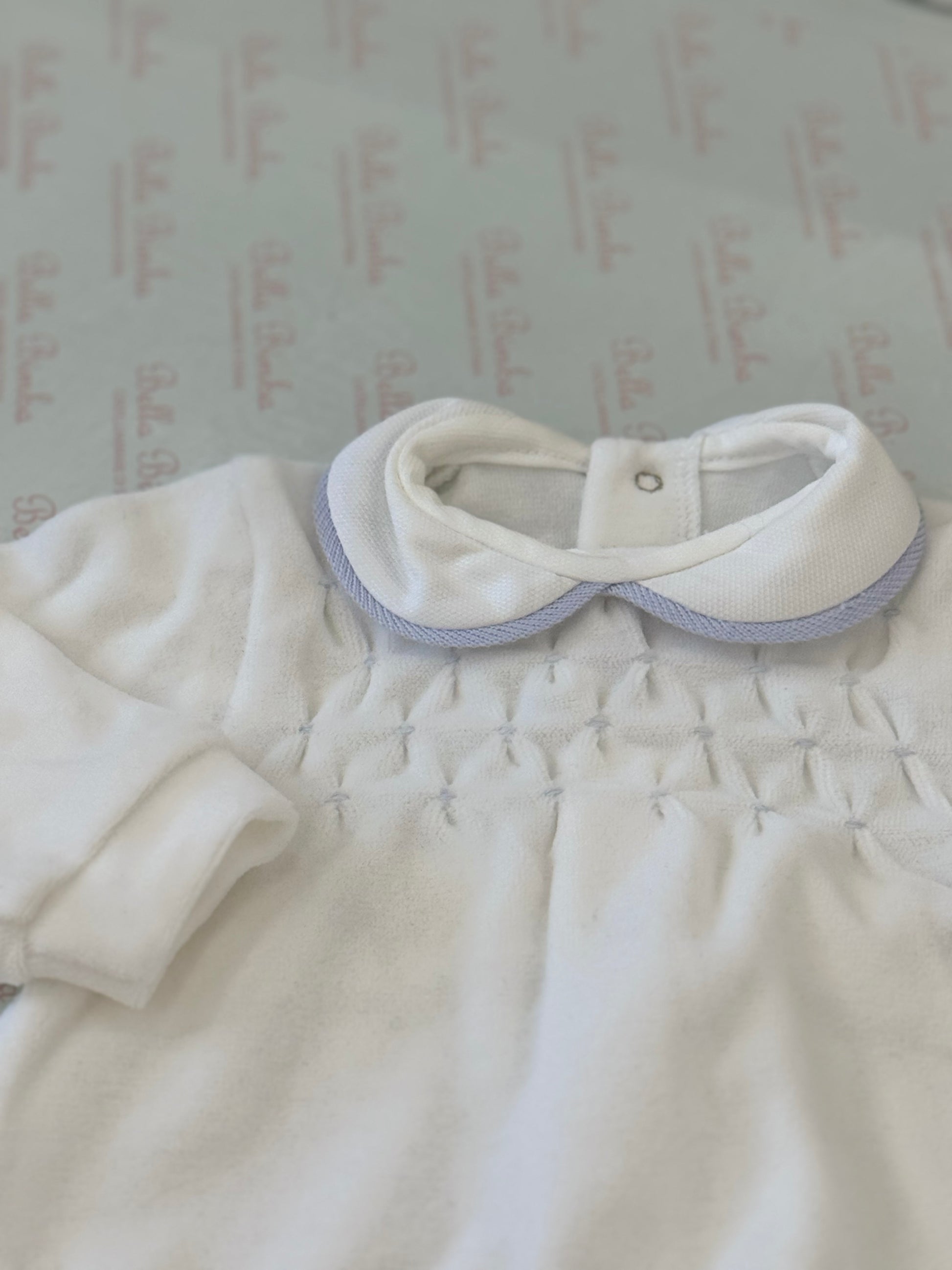 La tutina colibrì è realizzata in morbida ciniglia e presenta un delicato punto smock che la rende elegante e comoda. Perfetta per i più piccoli, garantisce il massimo comfort e un look raffinato. Confortevole e sofisticata, ideale per ogni occasione.