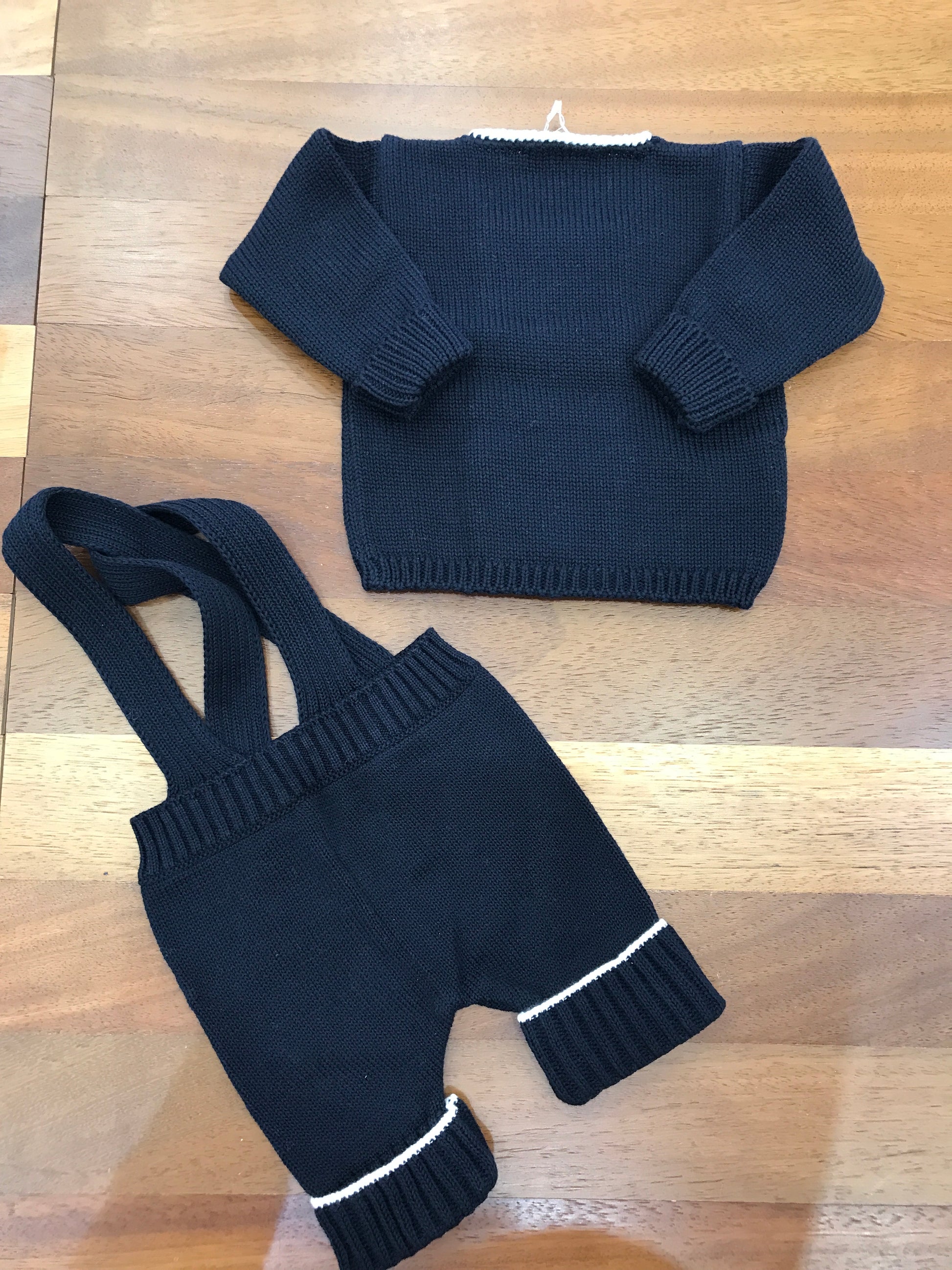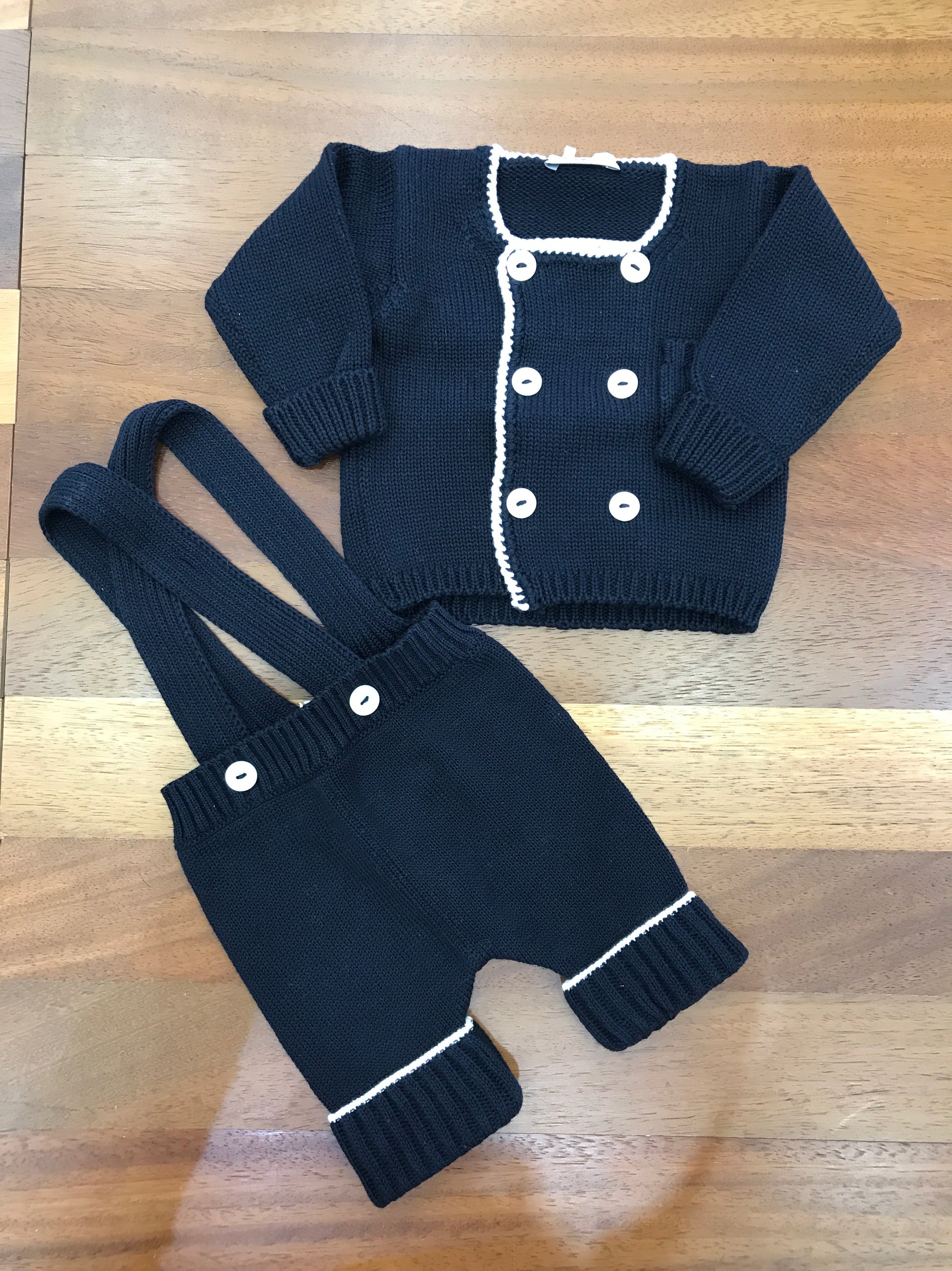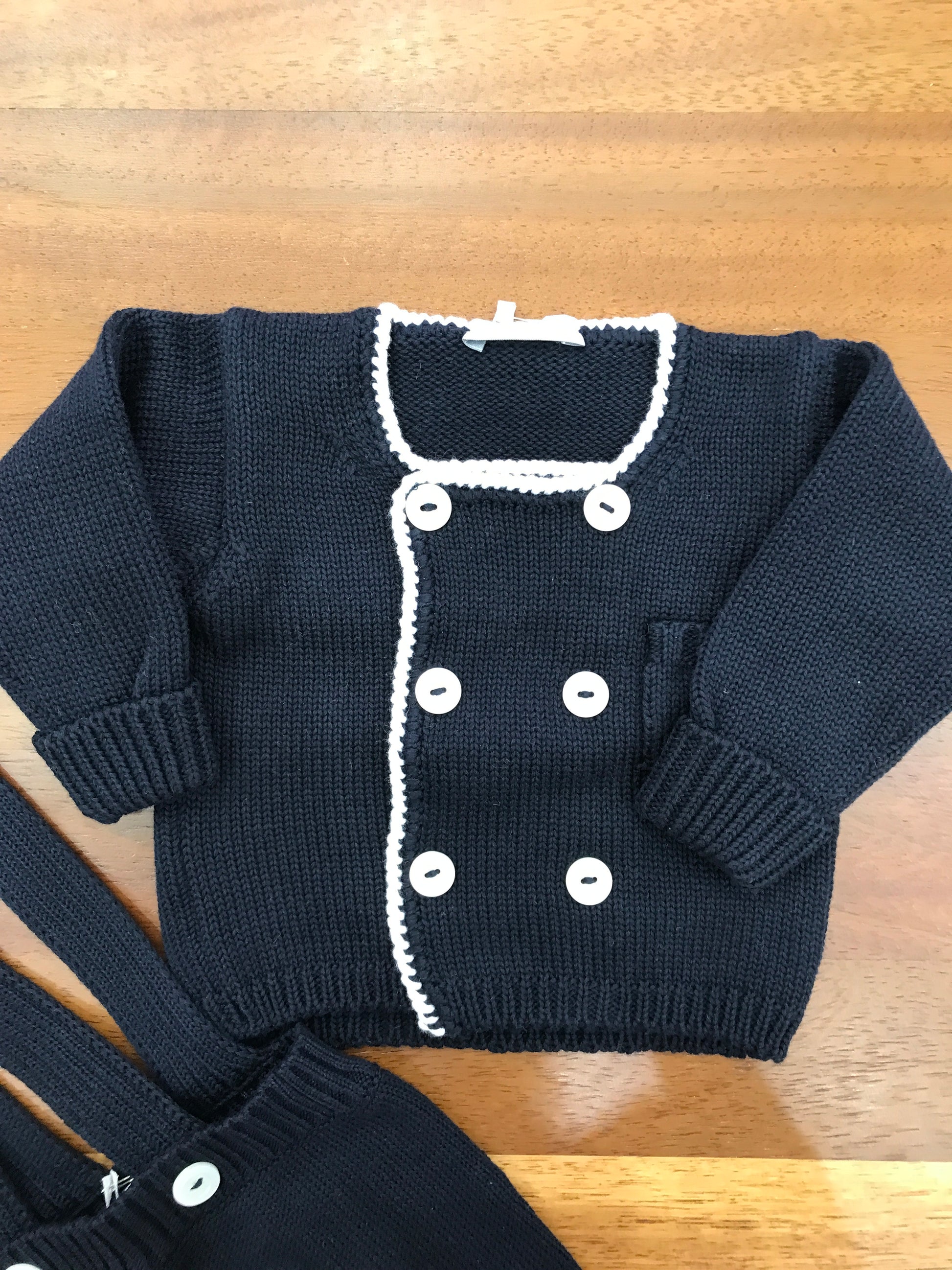 Elegante coordinato bicolore composto da cardigan doppiopetto con bottoni in madreperla e salopette in cotone leggero a gamba corta. Un abbinamento sofisticato che unisce praticità e raffinatezza, perfetto per occasioni speciali e momenti quotidiani con stile.