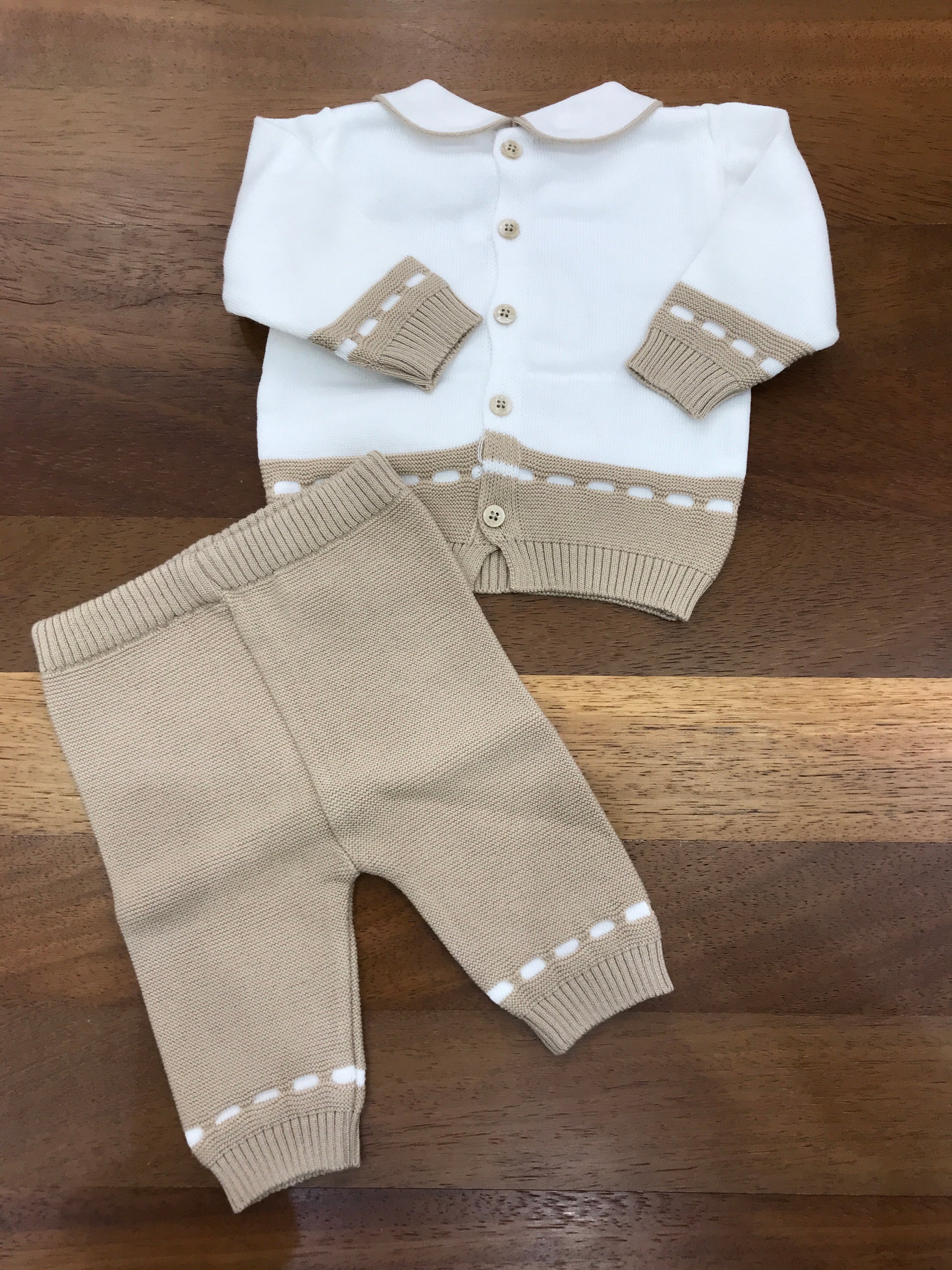 Completo in filo a due pezzi con pantalone basic tortora e top bianco con dettagli tortora. La composizione leggera e traspirante lo rende ideale per le stagioni calde, garantendo comfort e libertà di movimento. Completo di cappellino coordinato per uno stile coeso e raffinato.
