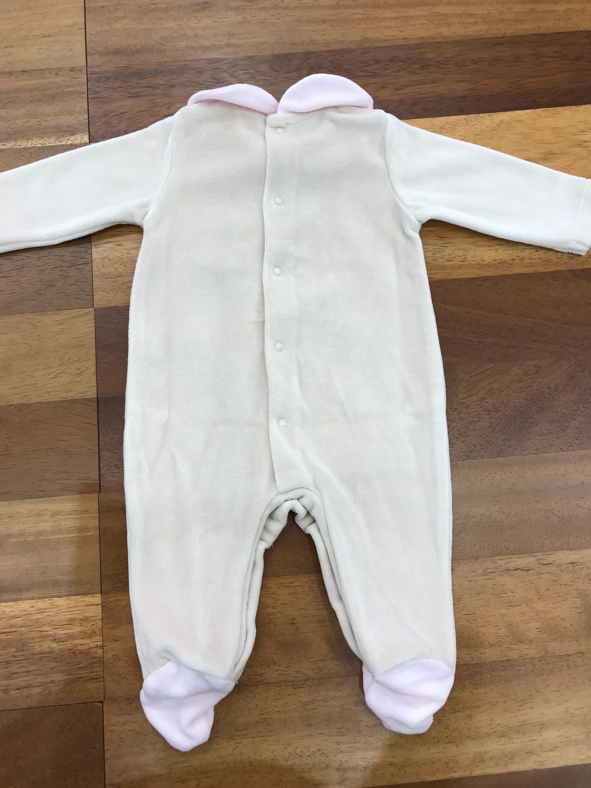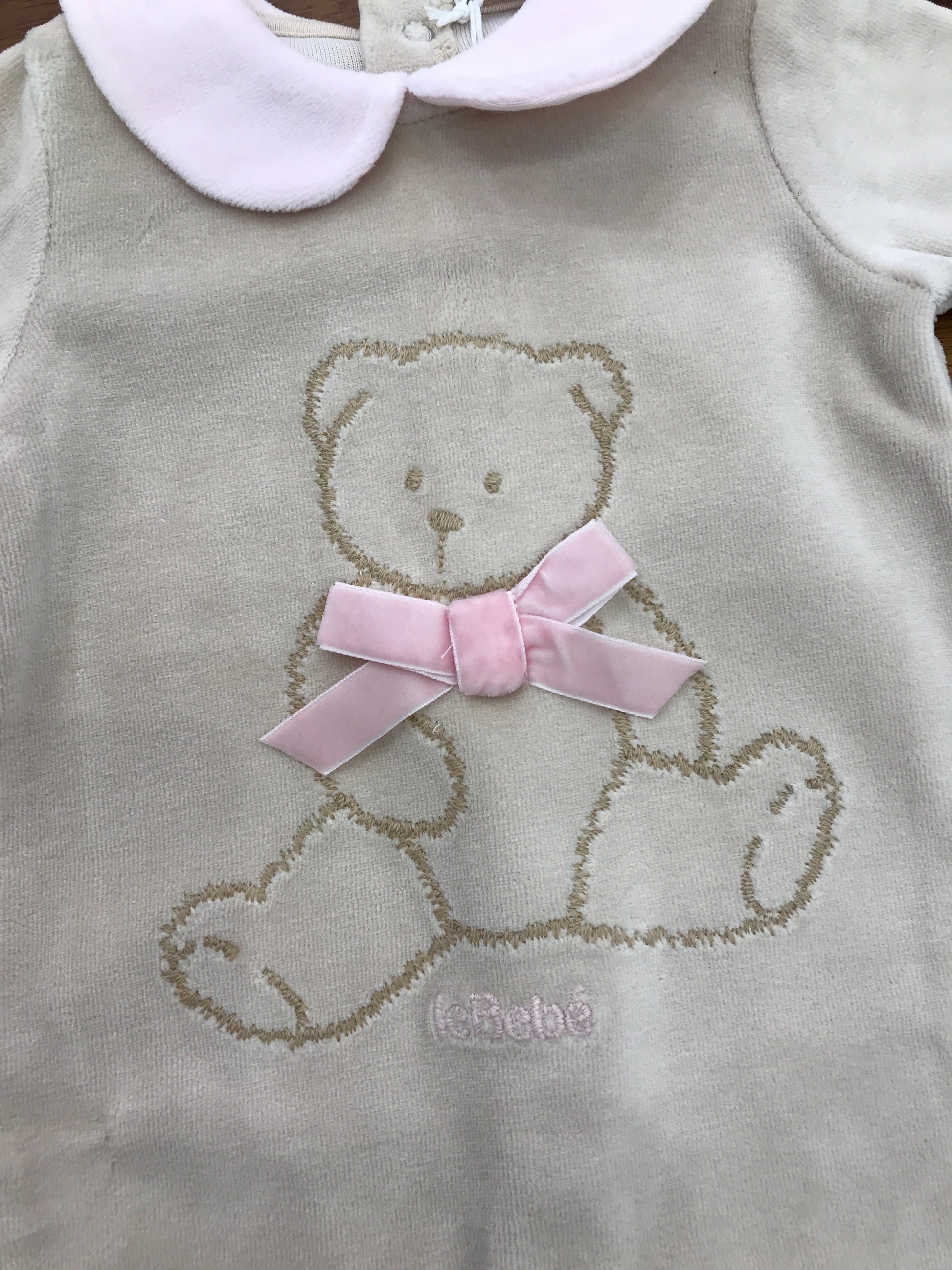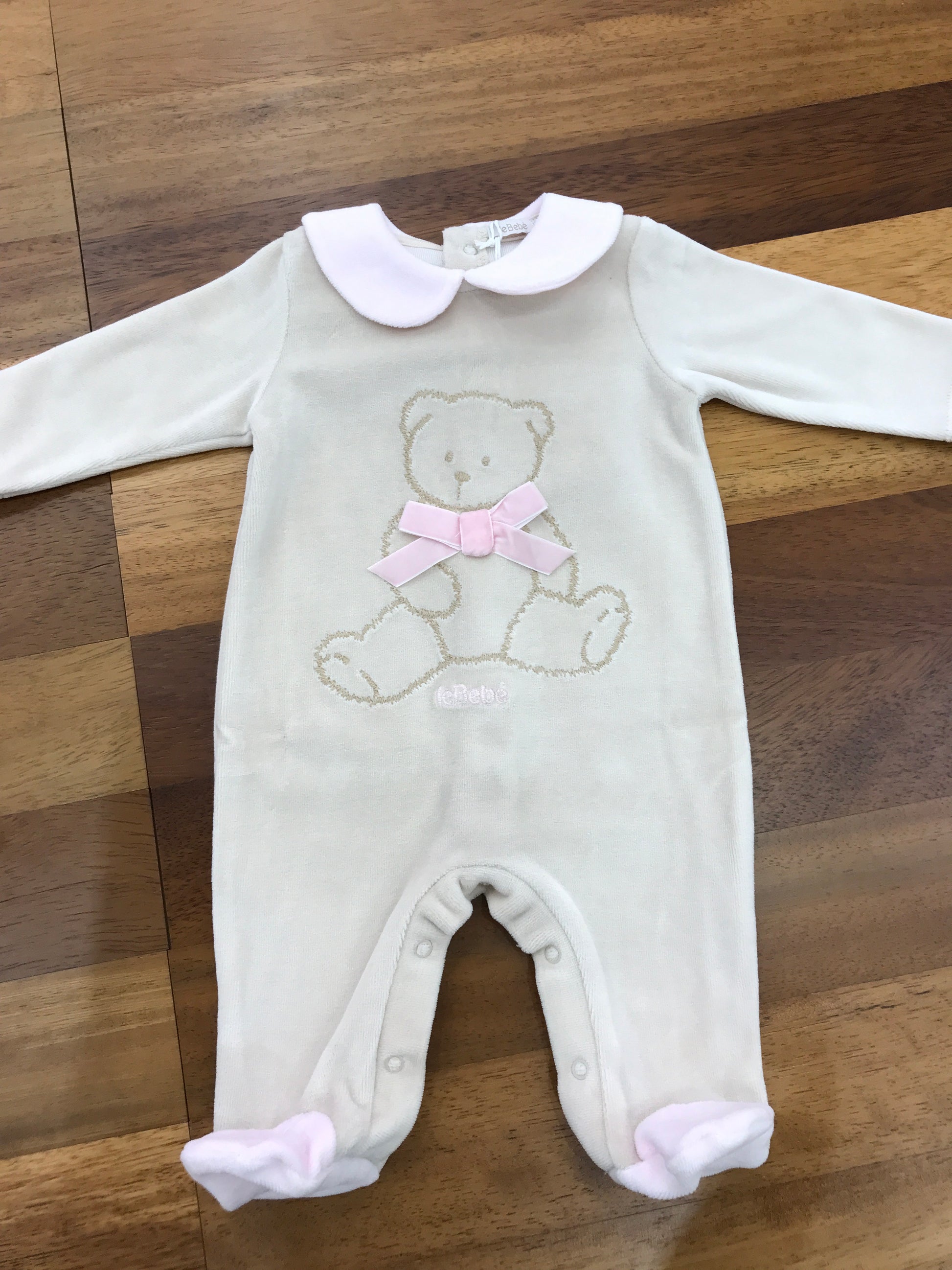 Questa tutina intera rosa, completa di piedini, è progettata per garantire comfort e stile ai più piccoli. Il colletto, anch’esso rosa, aggiunge un tocco di eleganza e si distingue per la presenza di un delicato orsetto ricamato, simbolo di dolcezza e cura nei dettagli. Al centro del colletto spicca un raffinato fiocchetto rosa, che completa il design con un elemento decorativo discreto ma raffinato, rendendo questa tutina ideale per ogni occasione speciale o per l’uso quotidiano con un tocco di classe.