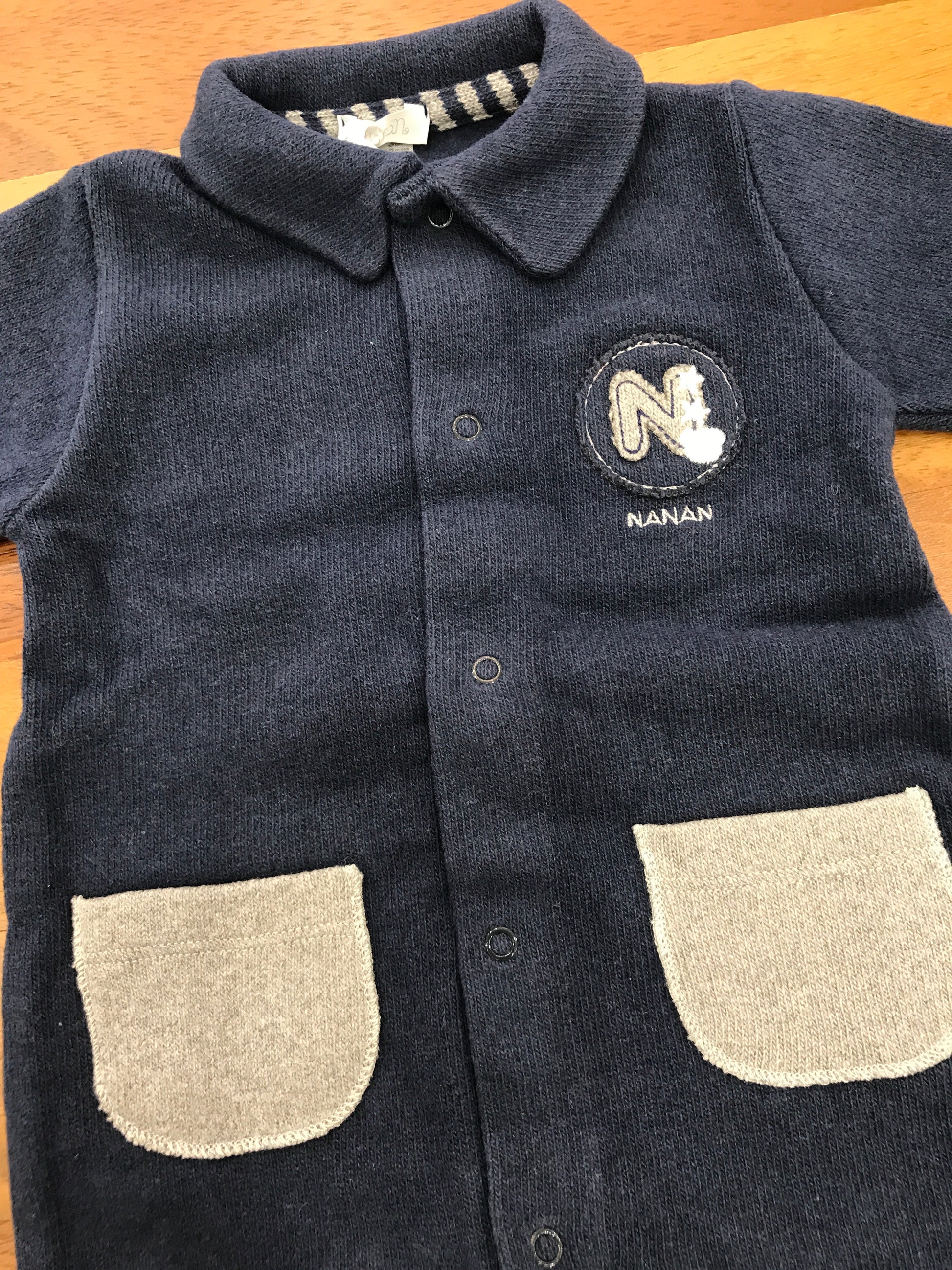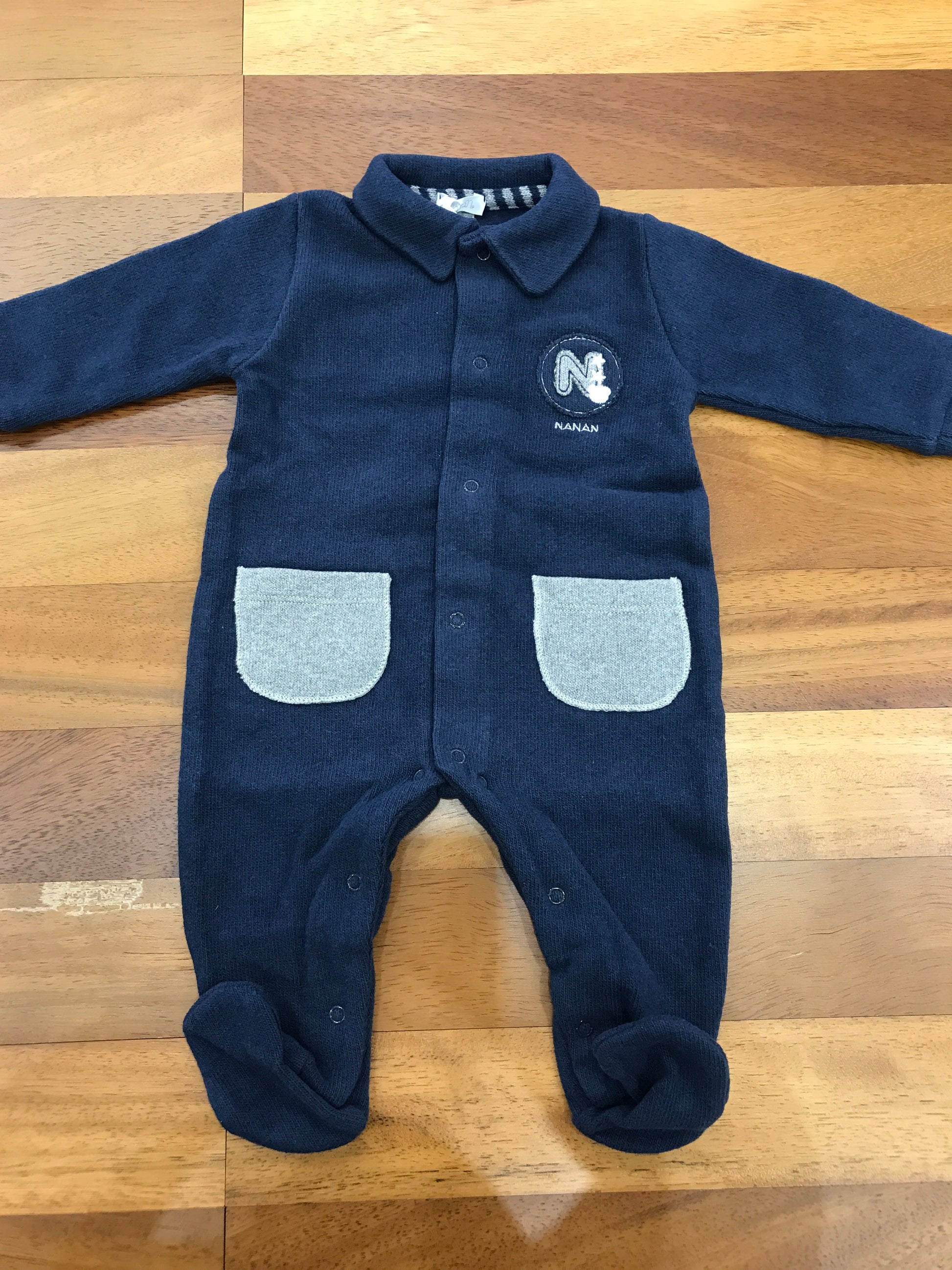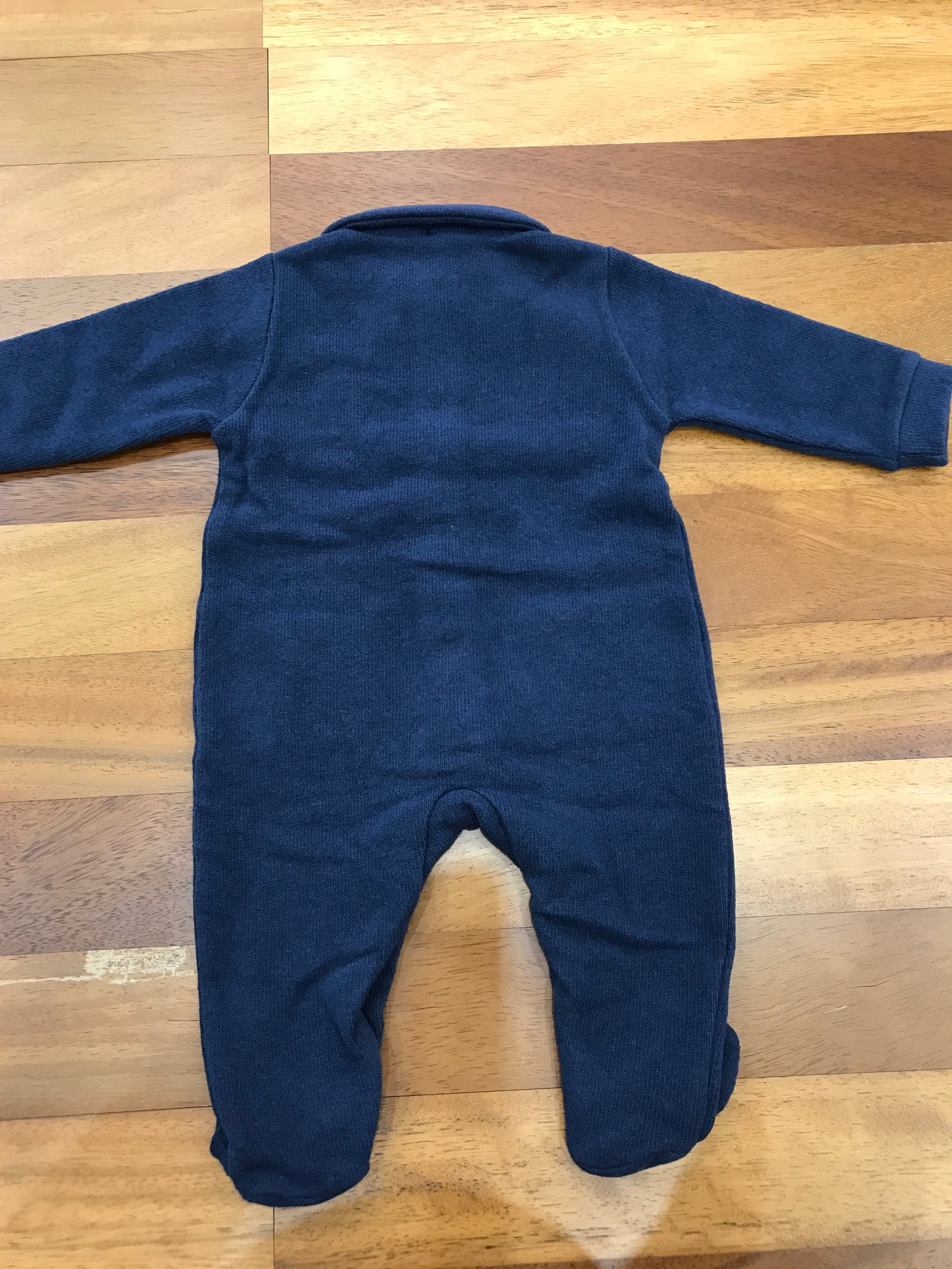 Questa tutina intera in ciniglia è dotata di piedini e colletto, presenta due tasche decorative sul davanti e si chiude con bottoncini frontali per una pratica vestibilità.