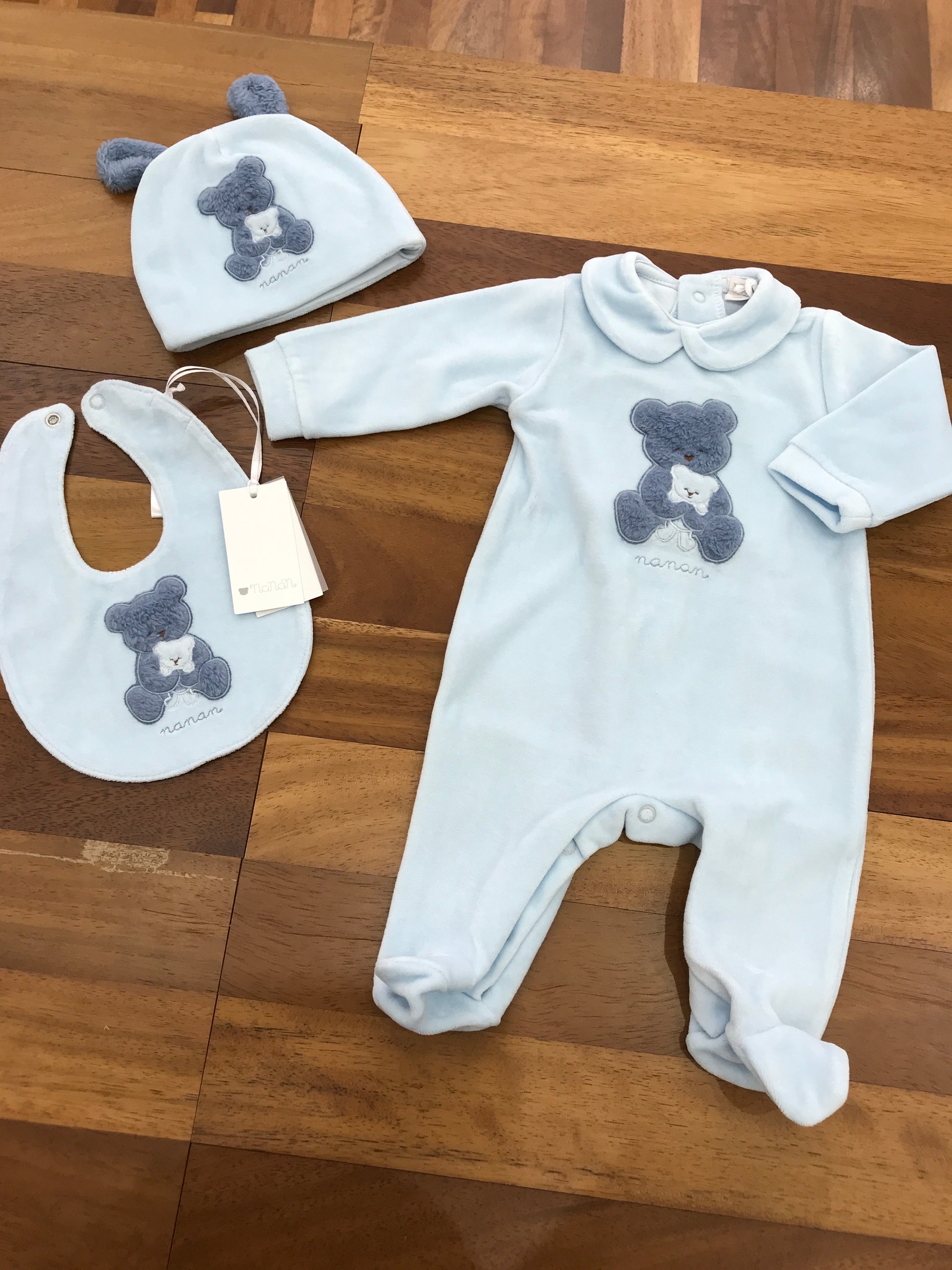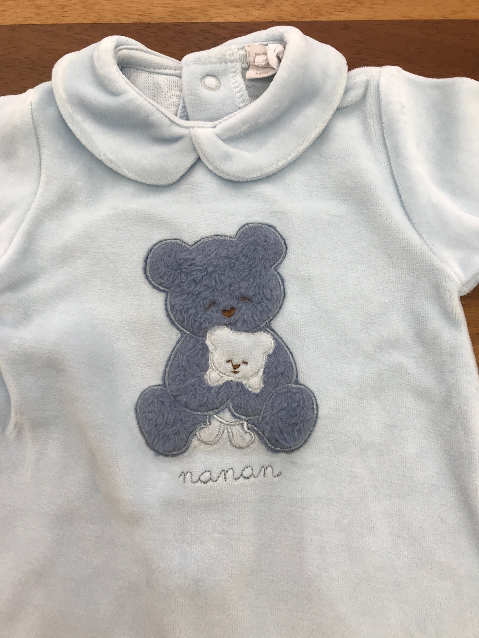 Questa tutina intera in ciniglia è dotata di piedini coprenti e un colletto elegante; sul davanti presenta un orsetto peloso decorativo che aggiunge un tocco di dolcezza.