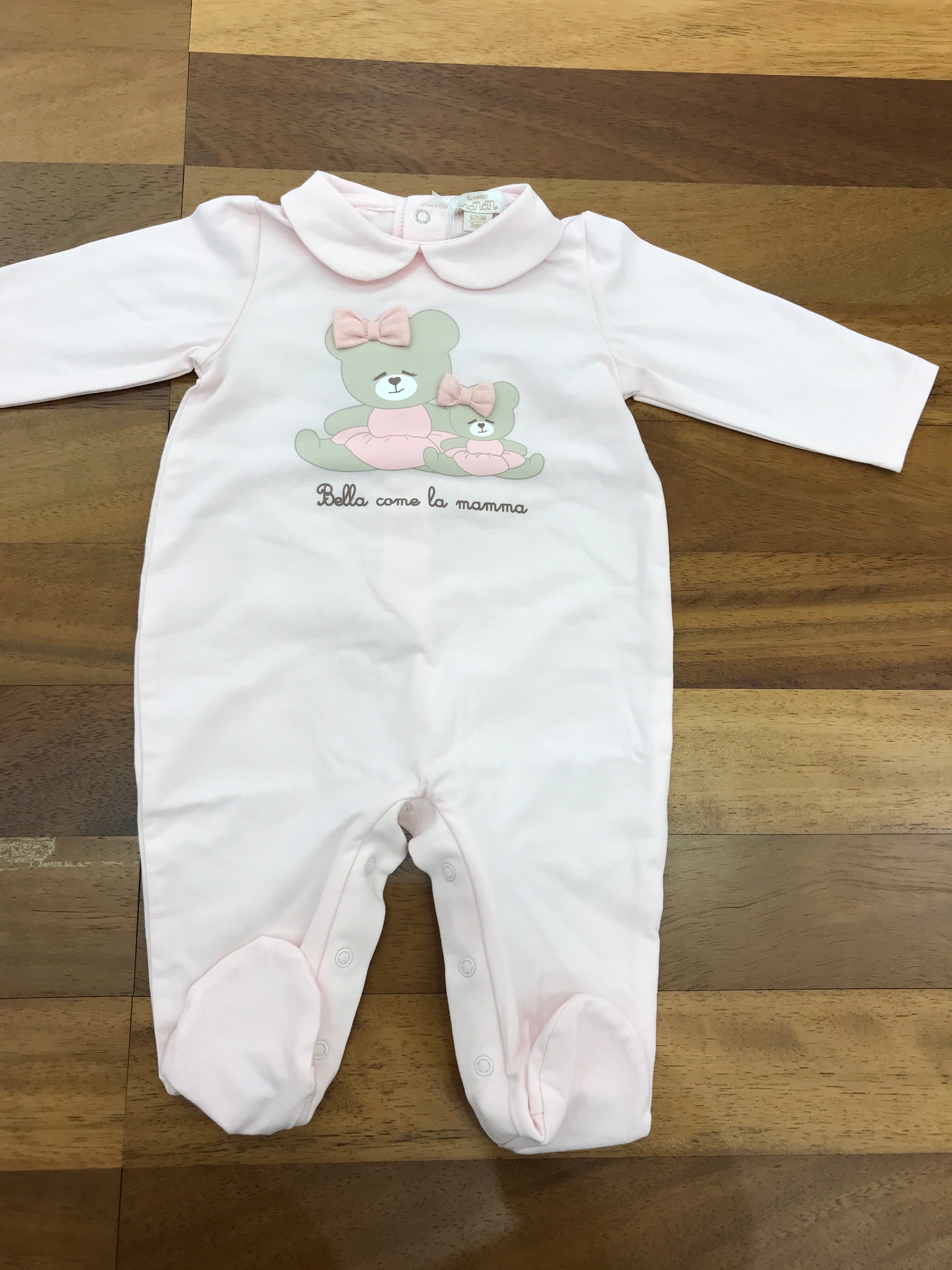Questa tutina intera, realizzata in caldo cotone, è progettata per offrire comfort e protezione al tuo bambino. Include piedini integrati e un colletto per una vestibilità completa e accogliente. Sul davanti, due orsetti stampati aggiungono un tocco decorativo delicato e raffinato, rendendo il capo non solo pratico ma anche esteticamente piacevole. Ideale per mantenere il piccolo caldo e comodo durante tutta la giornata.