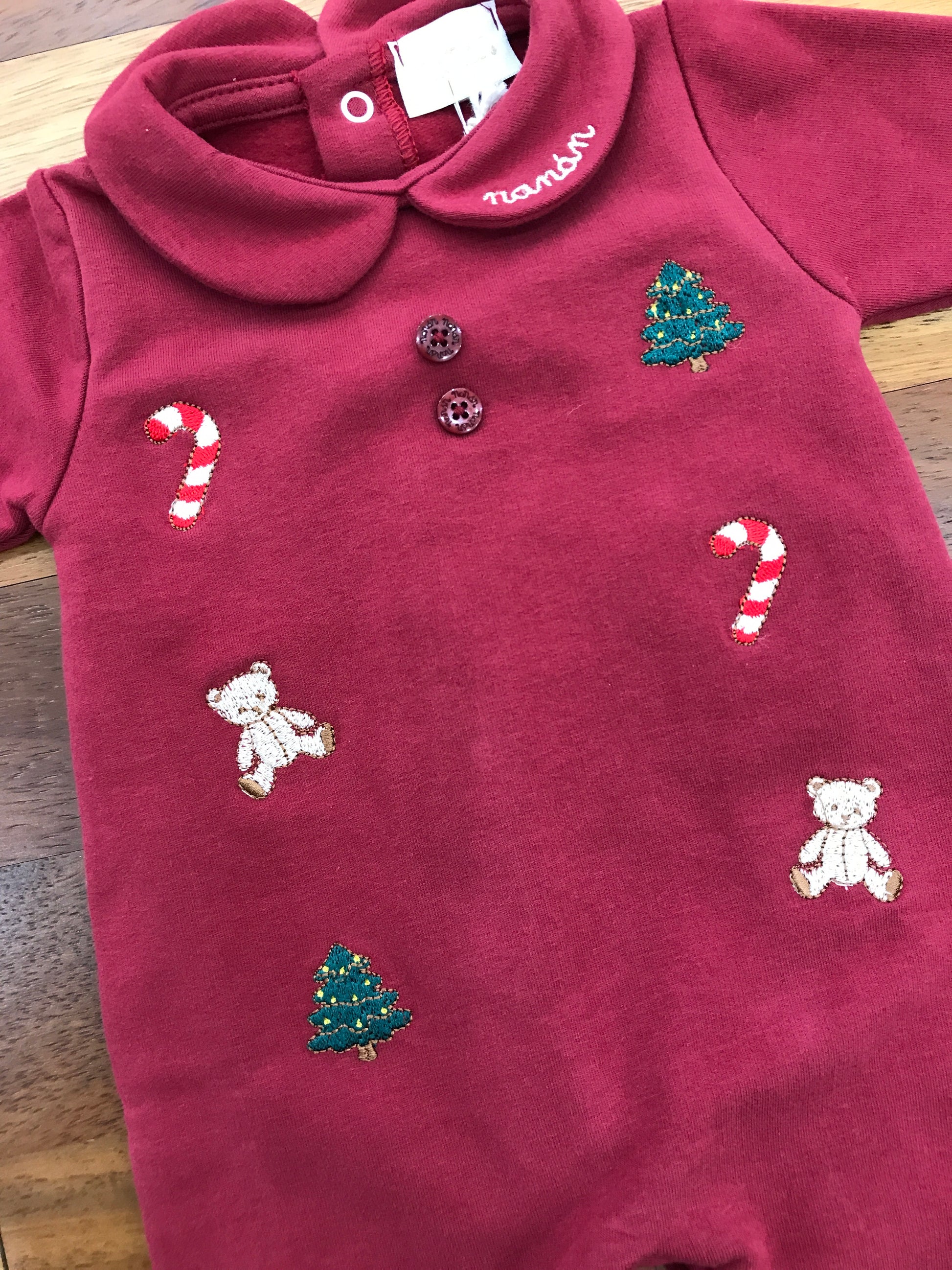 Tutina intera completa di piedini coperti e colletto, realizzata in morbido cotone caldo per garantire comfort e protezione. Il capo è impreziosito da ricami a tema natalizio, che donano un tocco elegante e festoso, perfetto per le occasioni speciali durante la stagione invernale. Questa tutina unisce funzionalità e stile, assicurando calore e un aspetto raffinato per i più piccoli.