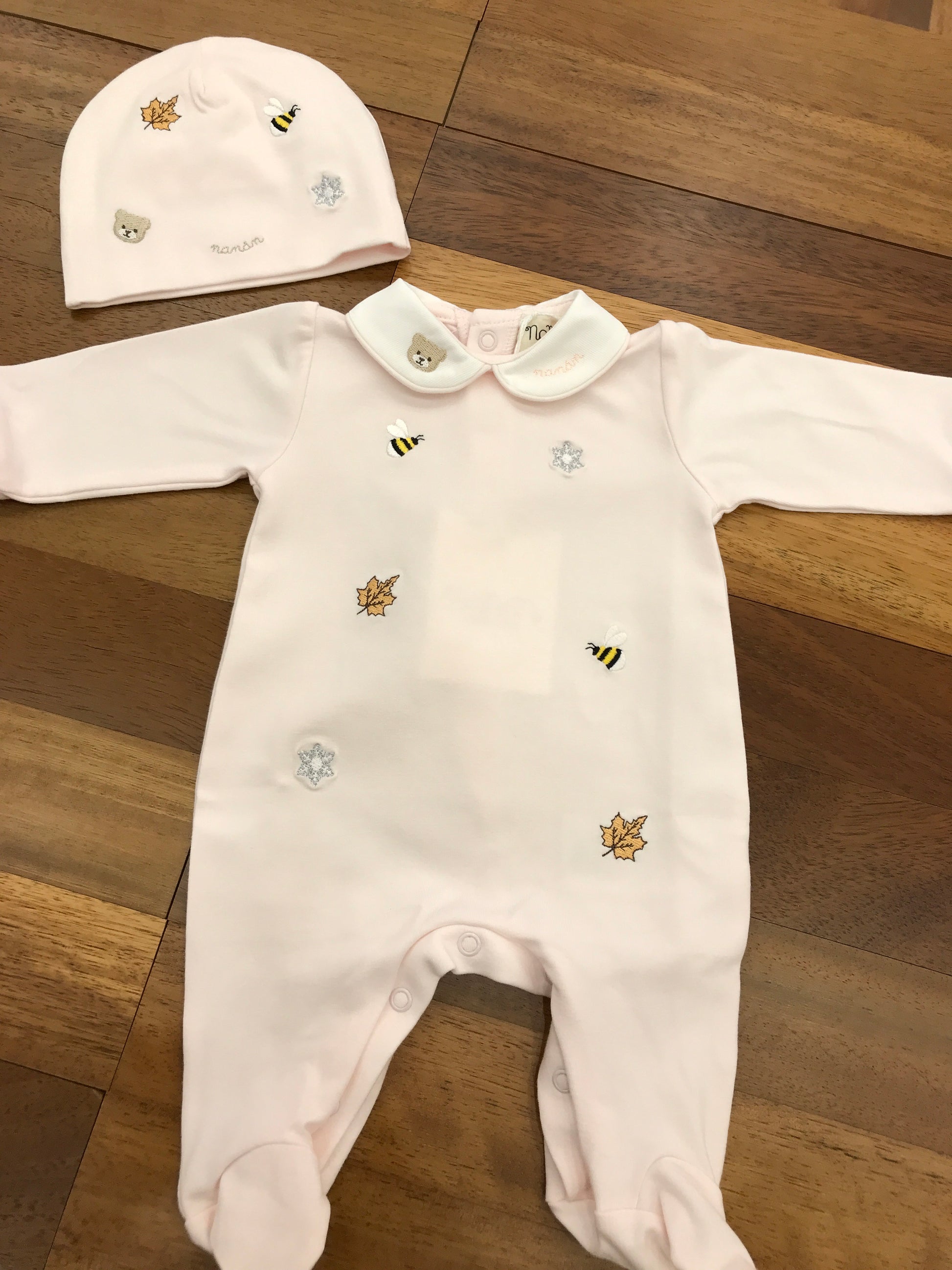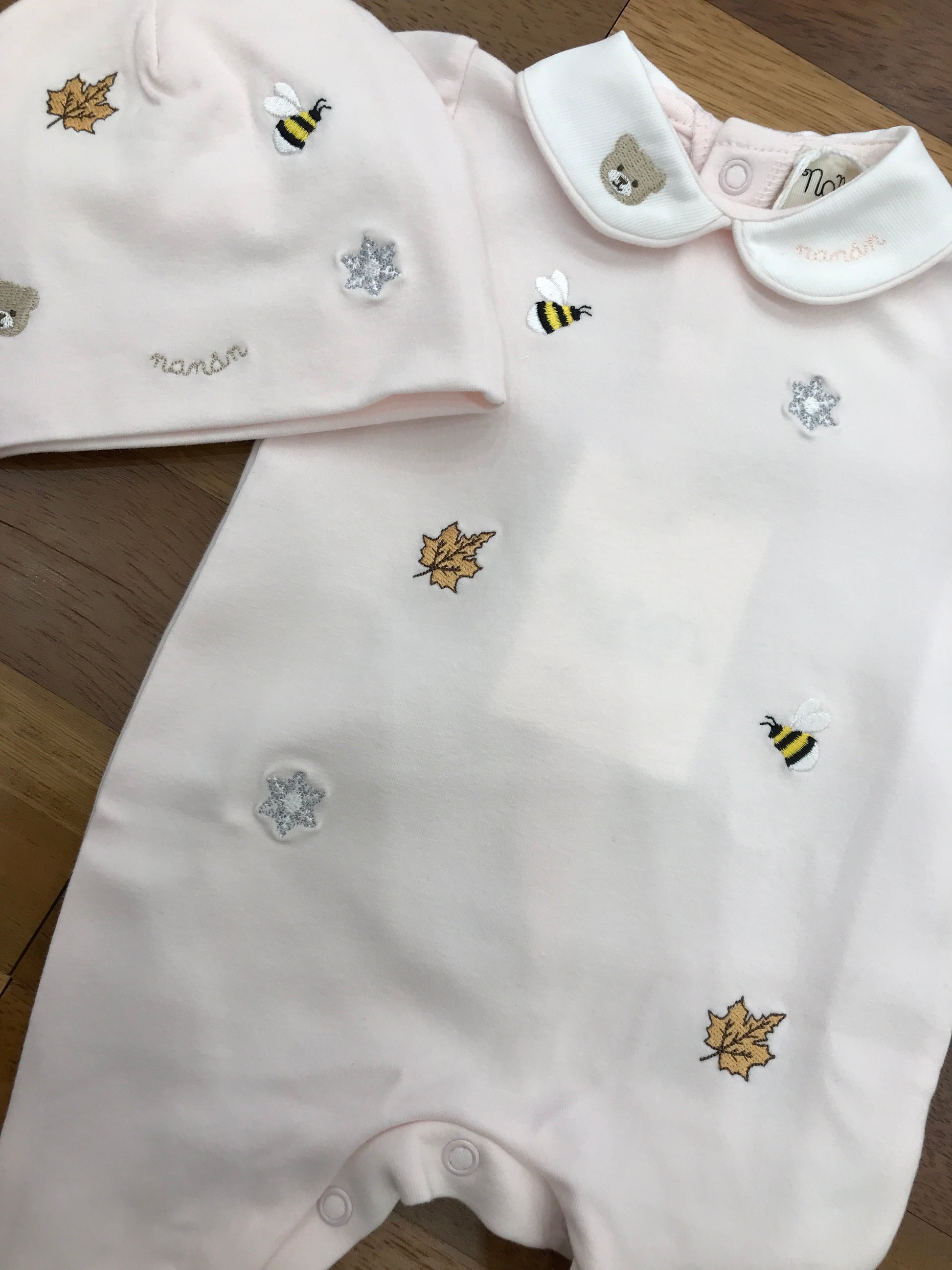 Questa tutina intera, realizzata in caldo cotone, è progettata per garantire comfort e calore al neonato. Presenta piedini integrati e un colletto delicato, offrendo una vestibilità completa e protettiva. La superficie è decorata con ricami raffinati che includono motivi come fiocchi di neve, api, orsetti e foglie, aggiungendo un tocco di dolcezza e originalità al capo. Il set comprende anche un cappellino coordinato, impreziosito dagli stessi ricami della tutina, per completare l’outfit con eleganza e cura nei dettagli.