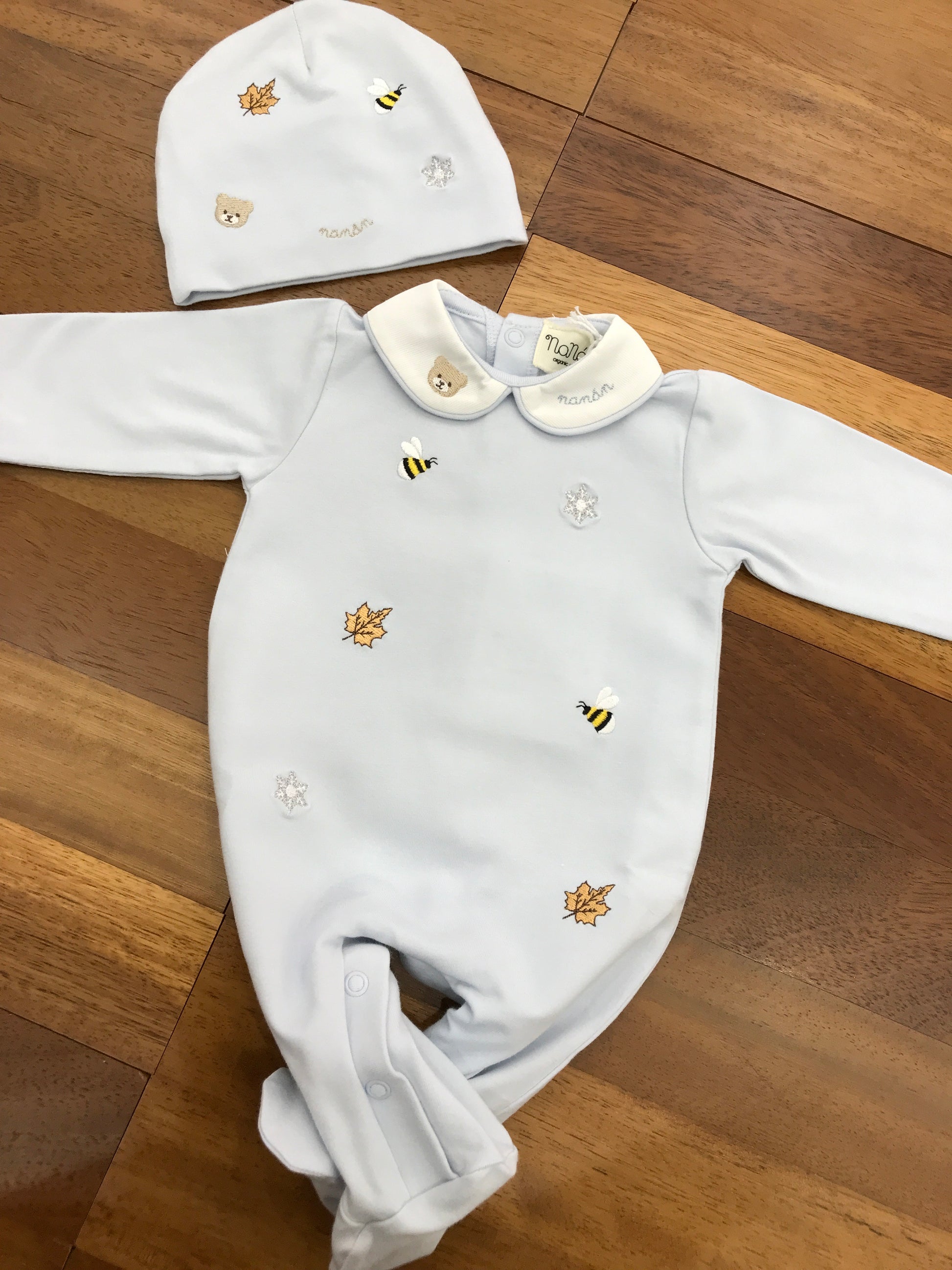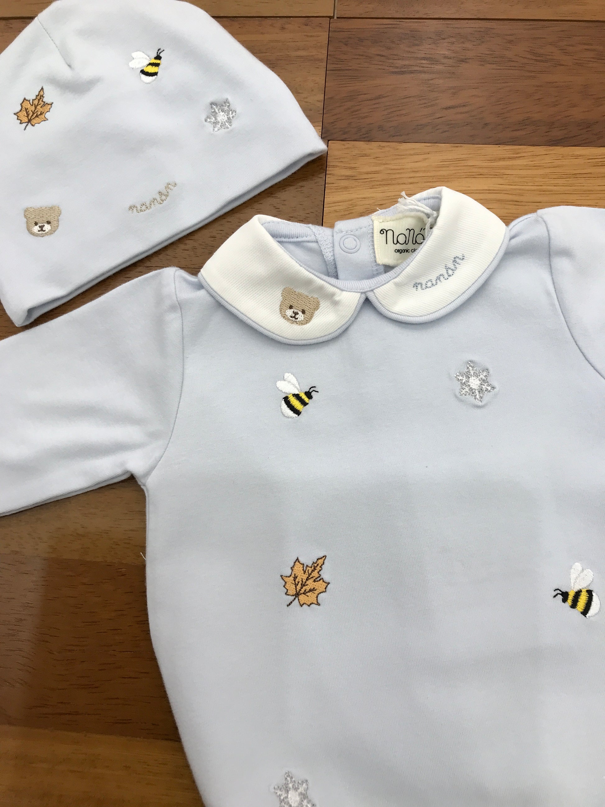 Questa tutina intera, realizzata in caldo cotone, è progettata per garantire comfort e calore al neonato. Presenta piedini integrati e un colletto delicato, offrendo una vestibilità completa e protettiva. La superficie è decorata con ricami raffinati che includono motivi come fiocchi di neve, api, orsetti e foglie, aggiungendo un tocco di dolcezza e originalità al capo. Il set comprende anche un cappellino coordinato, impreziosito dagli stessi ricami della tutina, per completare l’outfit con eleganza e cura nei dettagli.