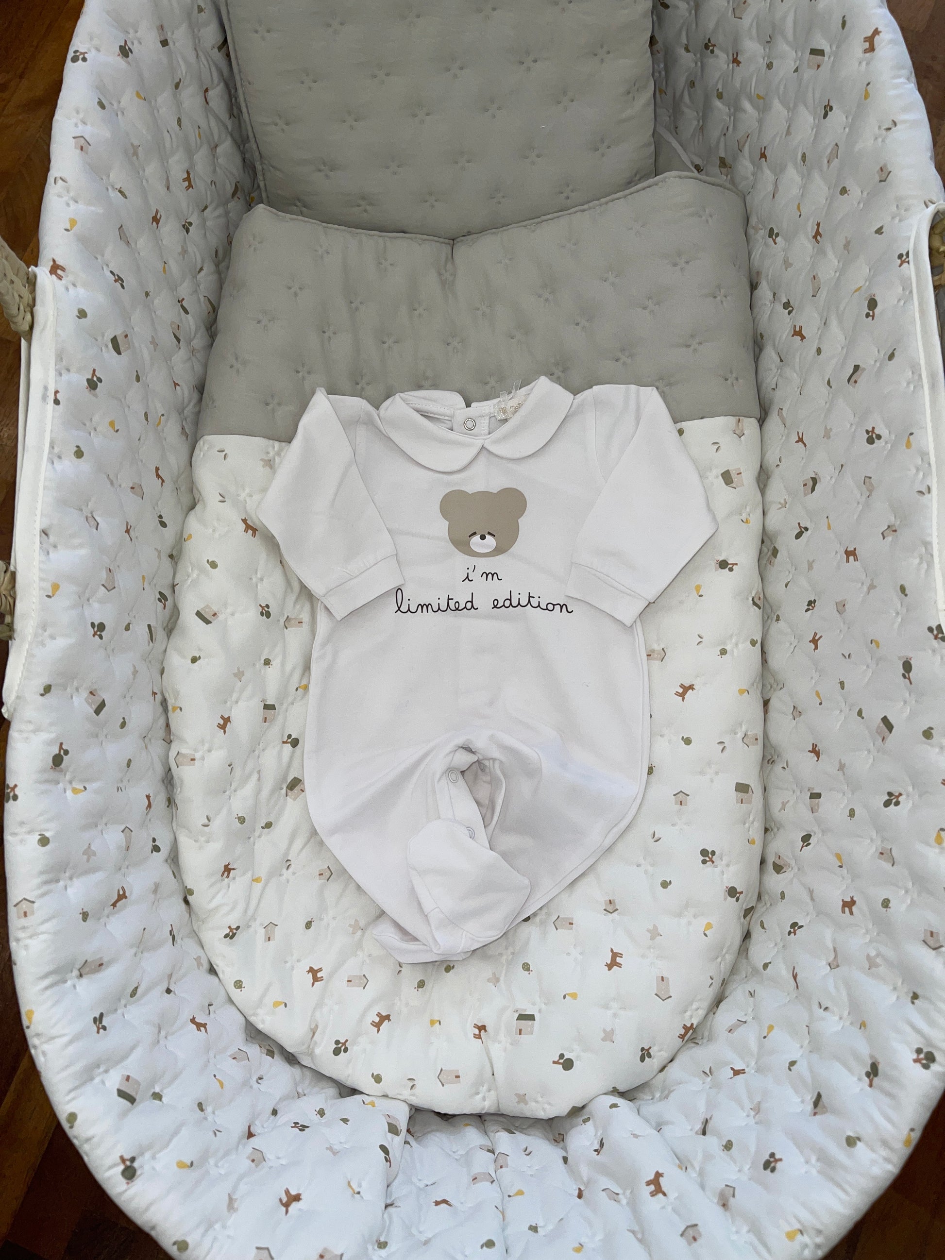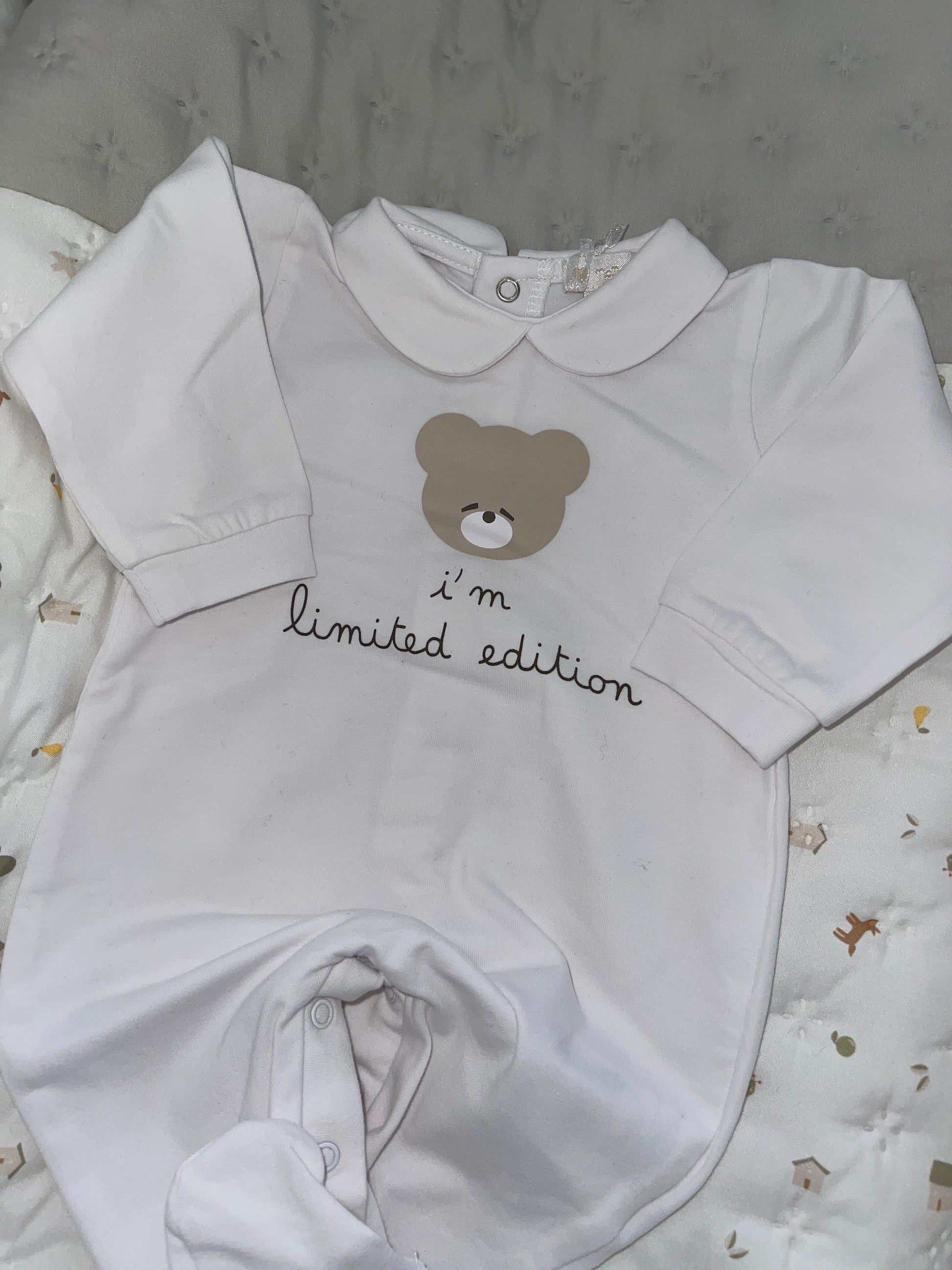 Questa tutina di cotone Nanan con orsetto stampato e scritta "I Am limited Edition" è perfetta per il tuo bambino . Realizzata con materiali morbidi e di alta qualità, garantisce comfort e stile. Con la sua stampa unica e la scritta, il tuo bambino sarà sempre al centro dell'attenzione. Ogni momento diventerà ancora più speciale con questa tutina.