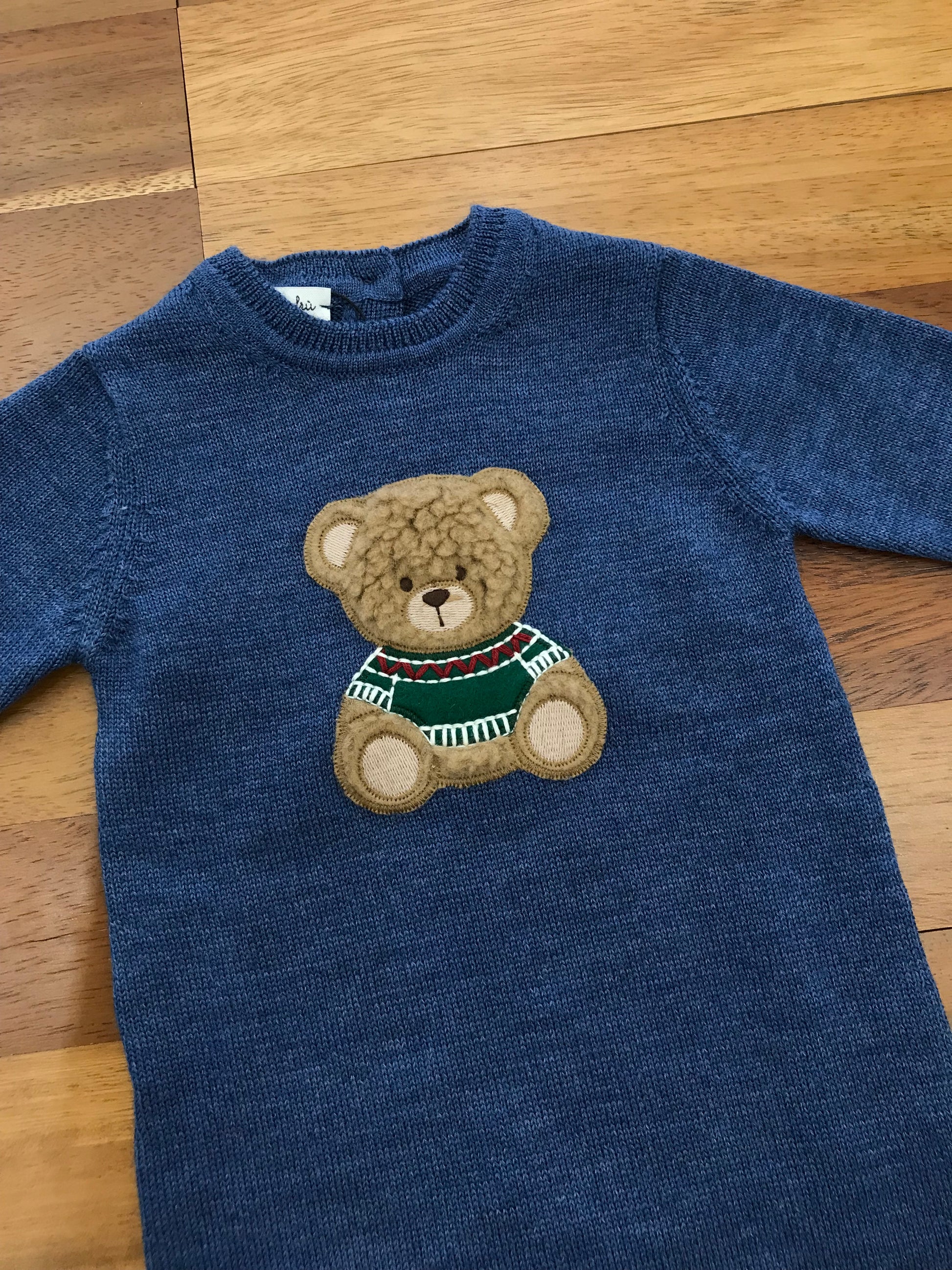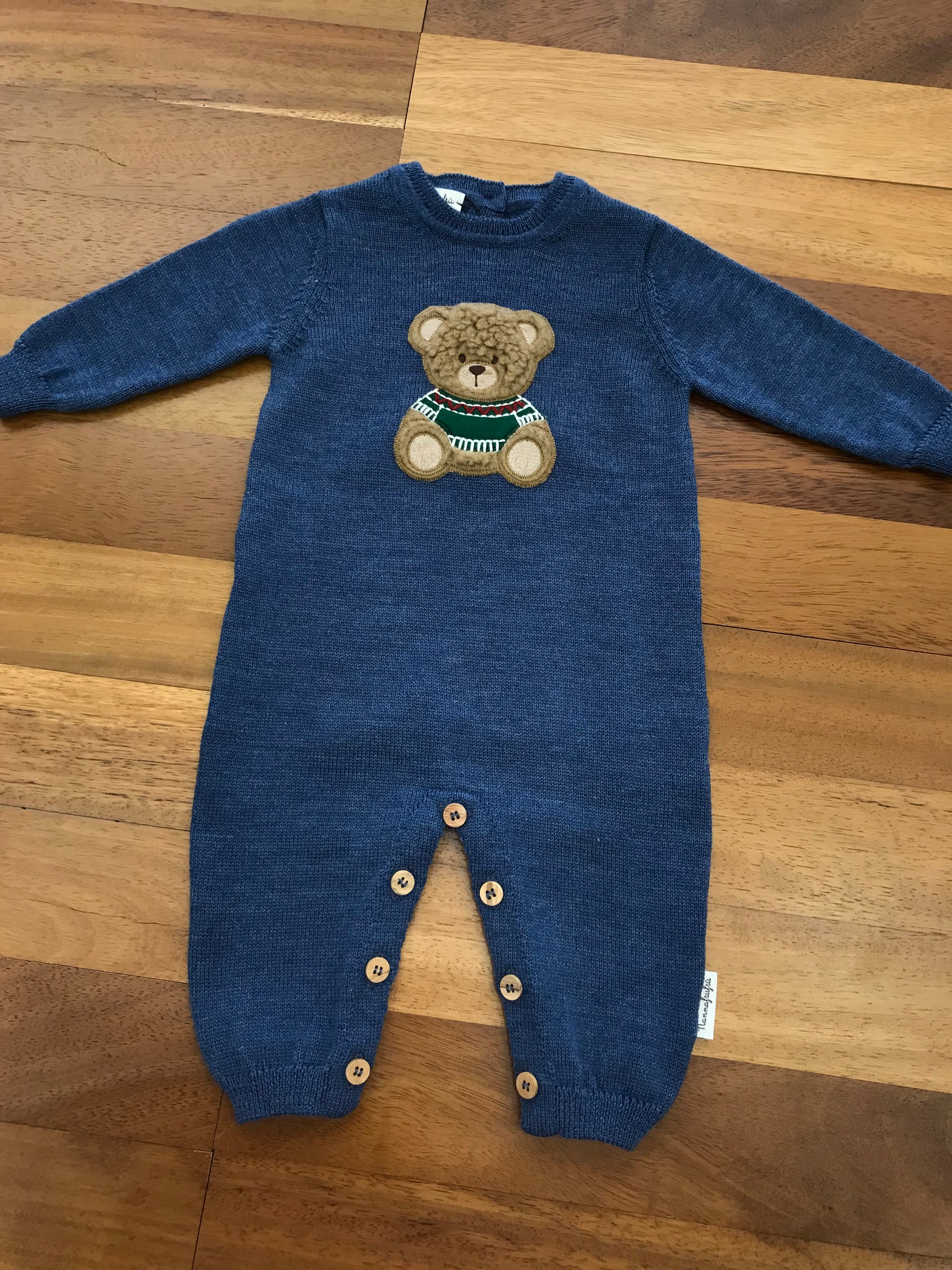 Questa tutina intera è priva di piedini e presenta un raffinato orsetto in rilievo, realizzato con un tessuto peloso e morbido, posizionato al centro della parte anteriore, ideale per aggiungere un tocco di dolcezza e comfort al capo.