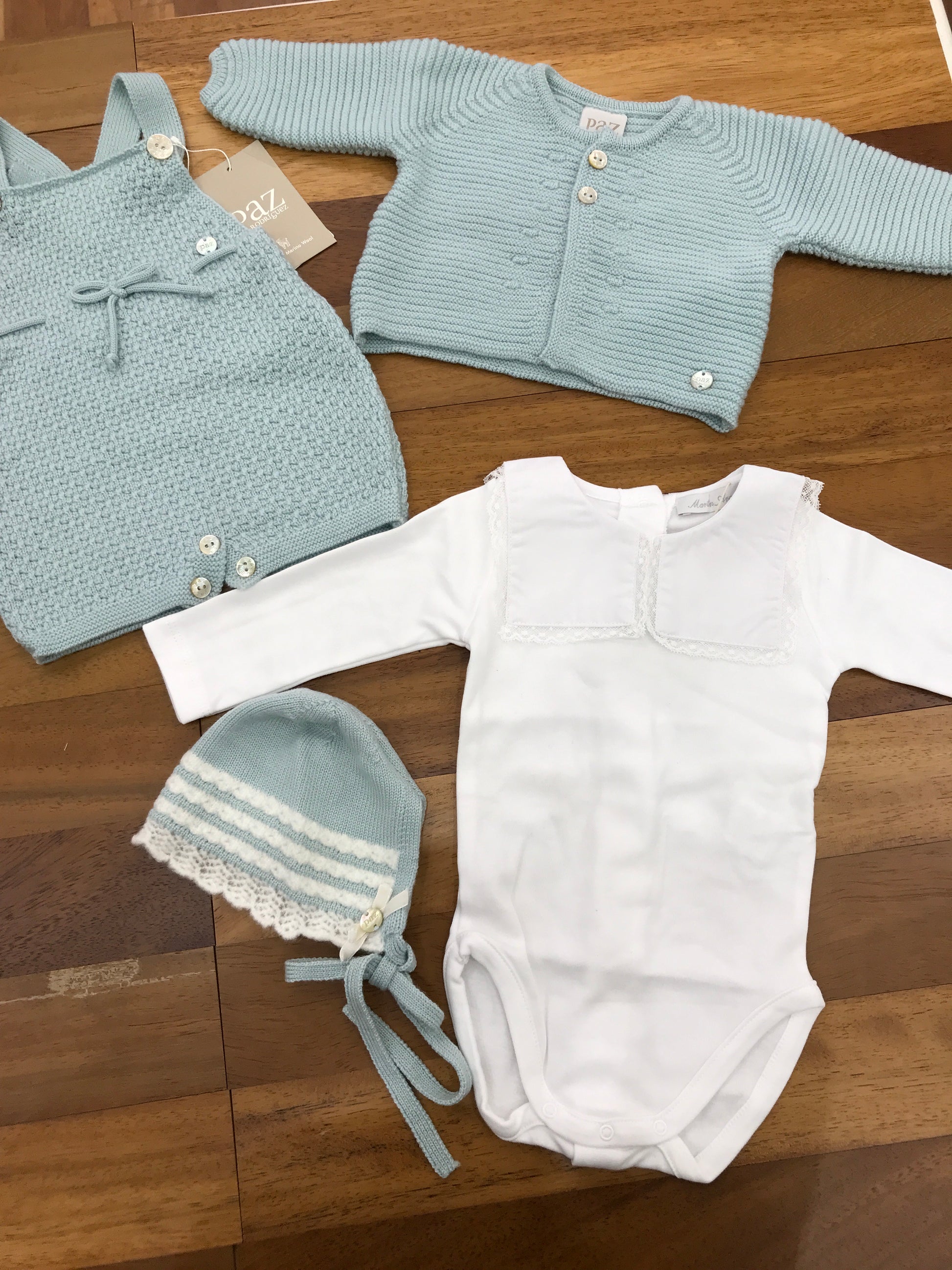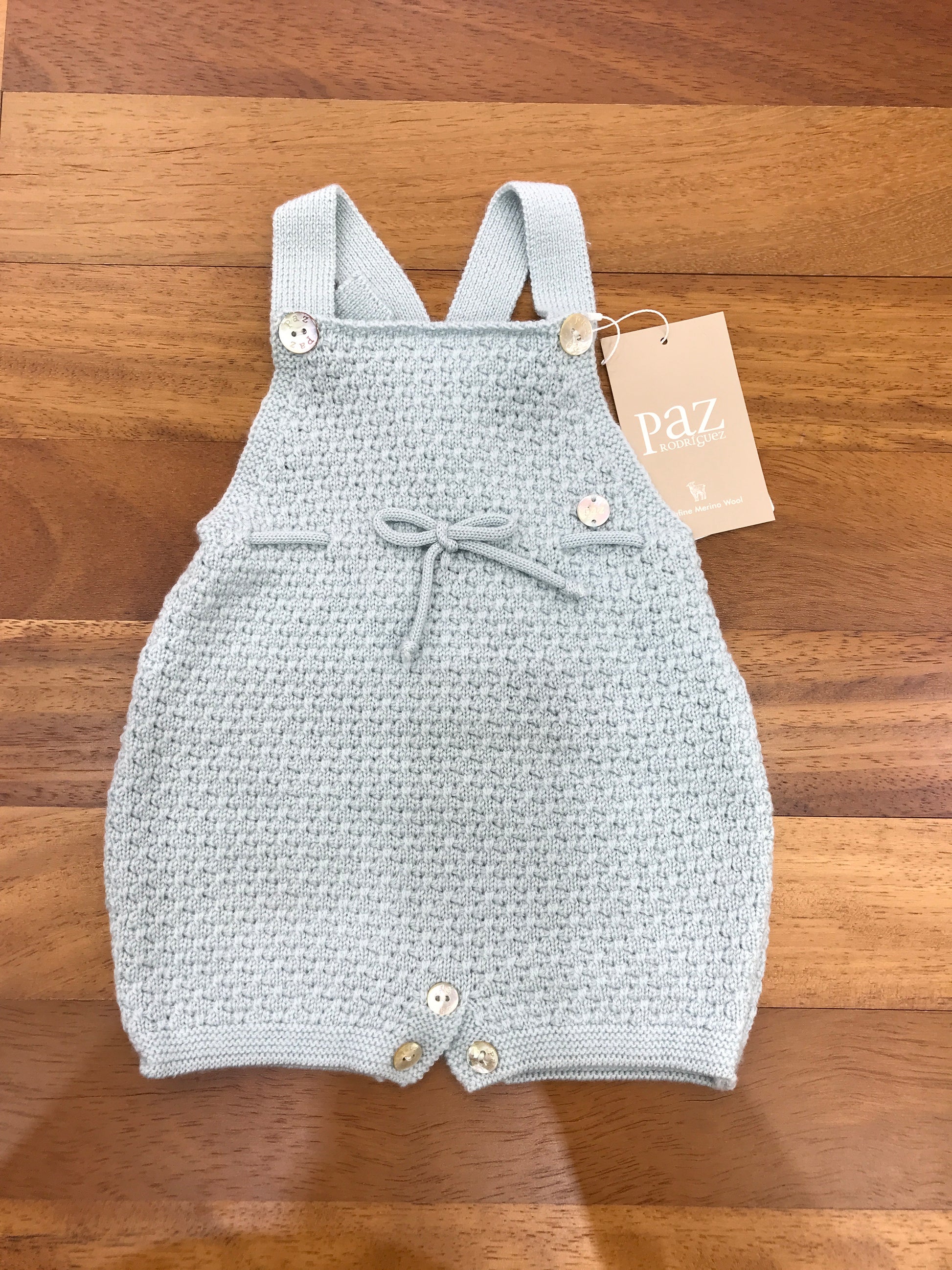 Salopette in lana caratterizzata da un elegante fiocchetto centrale.
