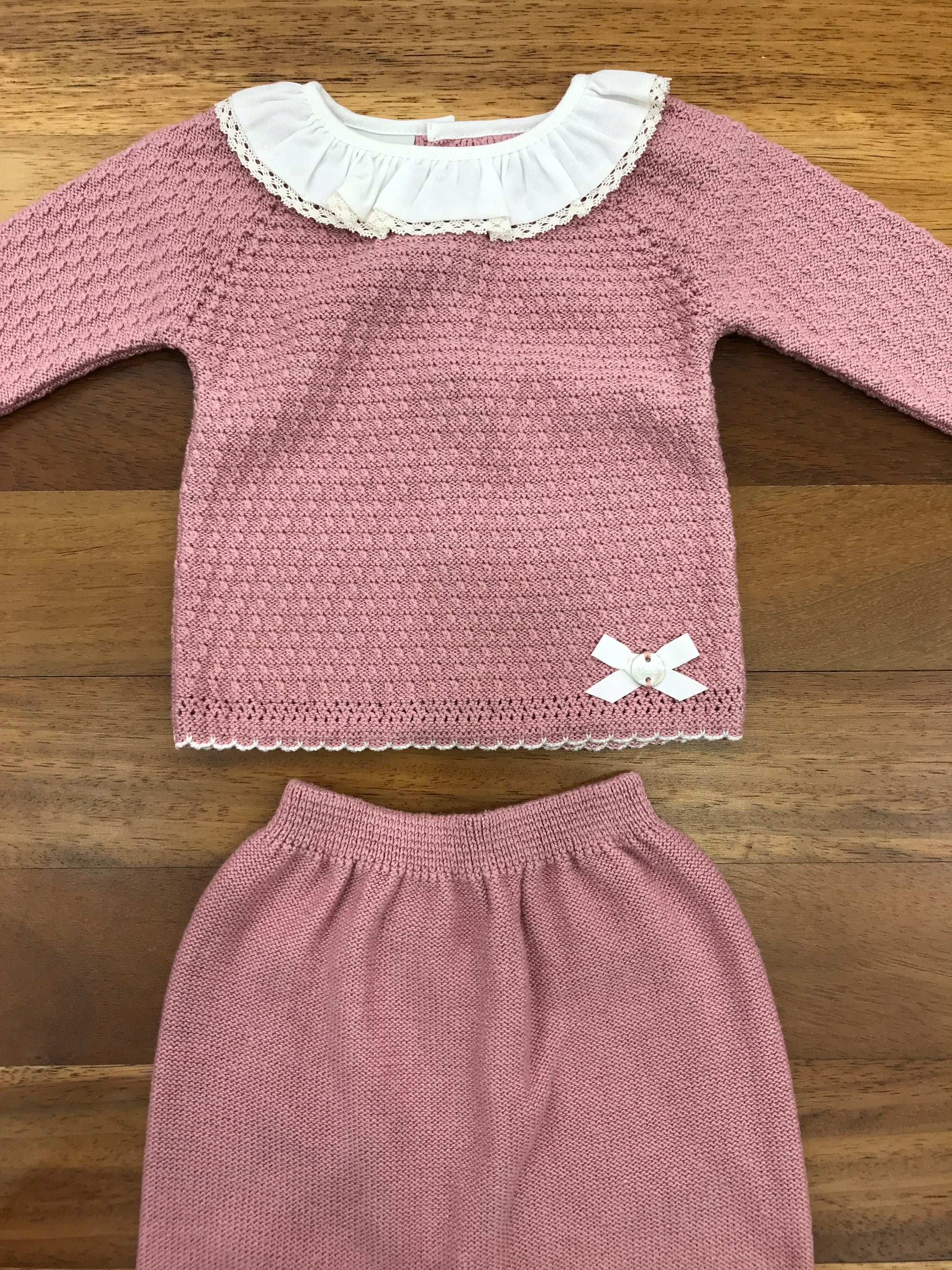Questa tutina intera in lana è dotata di dettagli raffinati in merletto sul collo e sui piedini, garantendo comfort e stile per il tuo bambino.