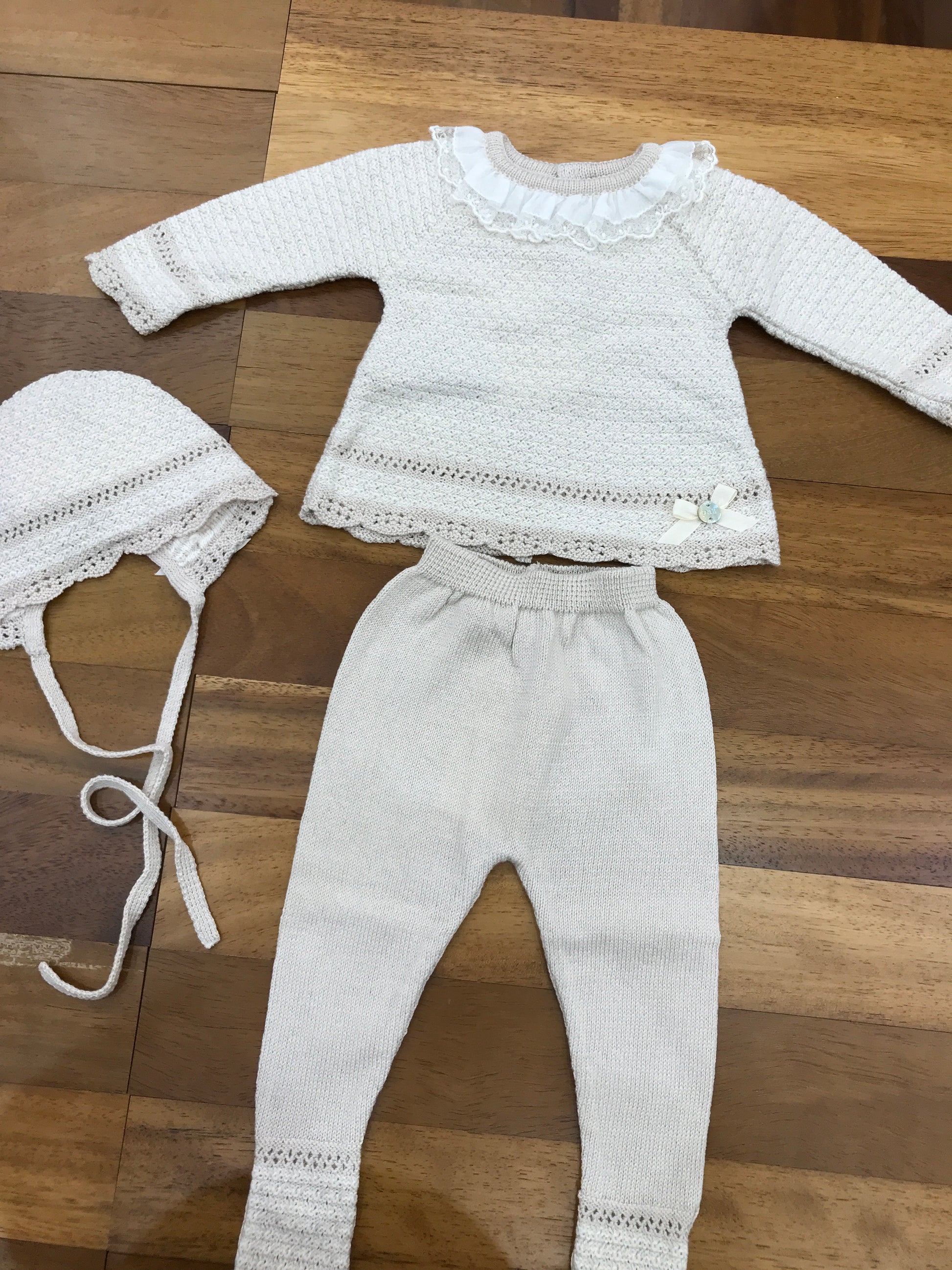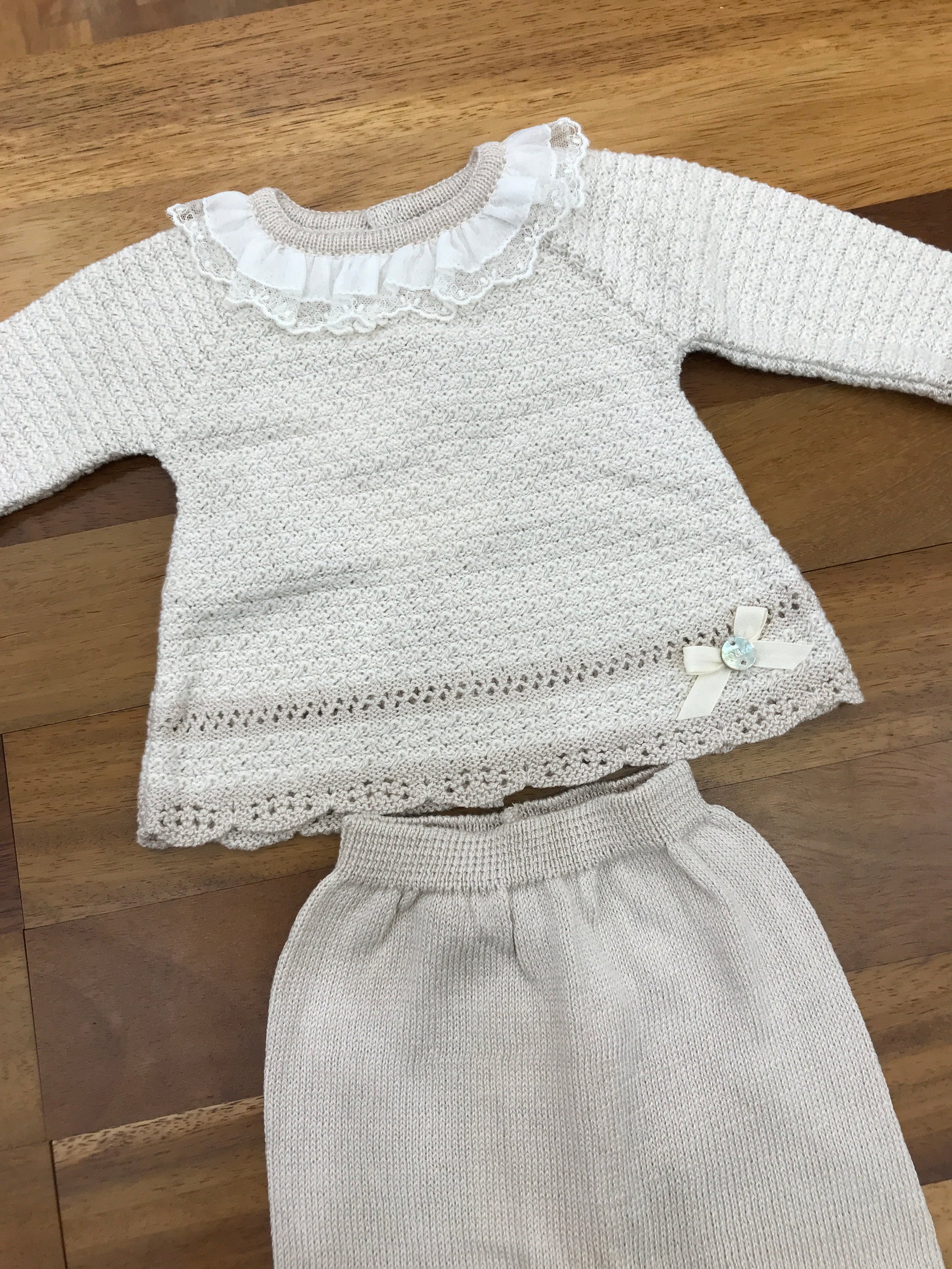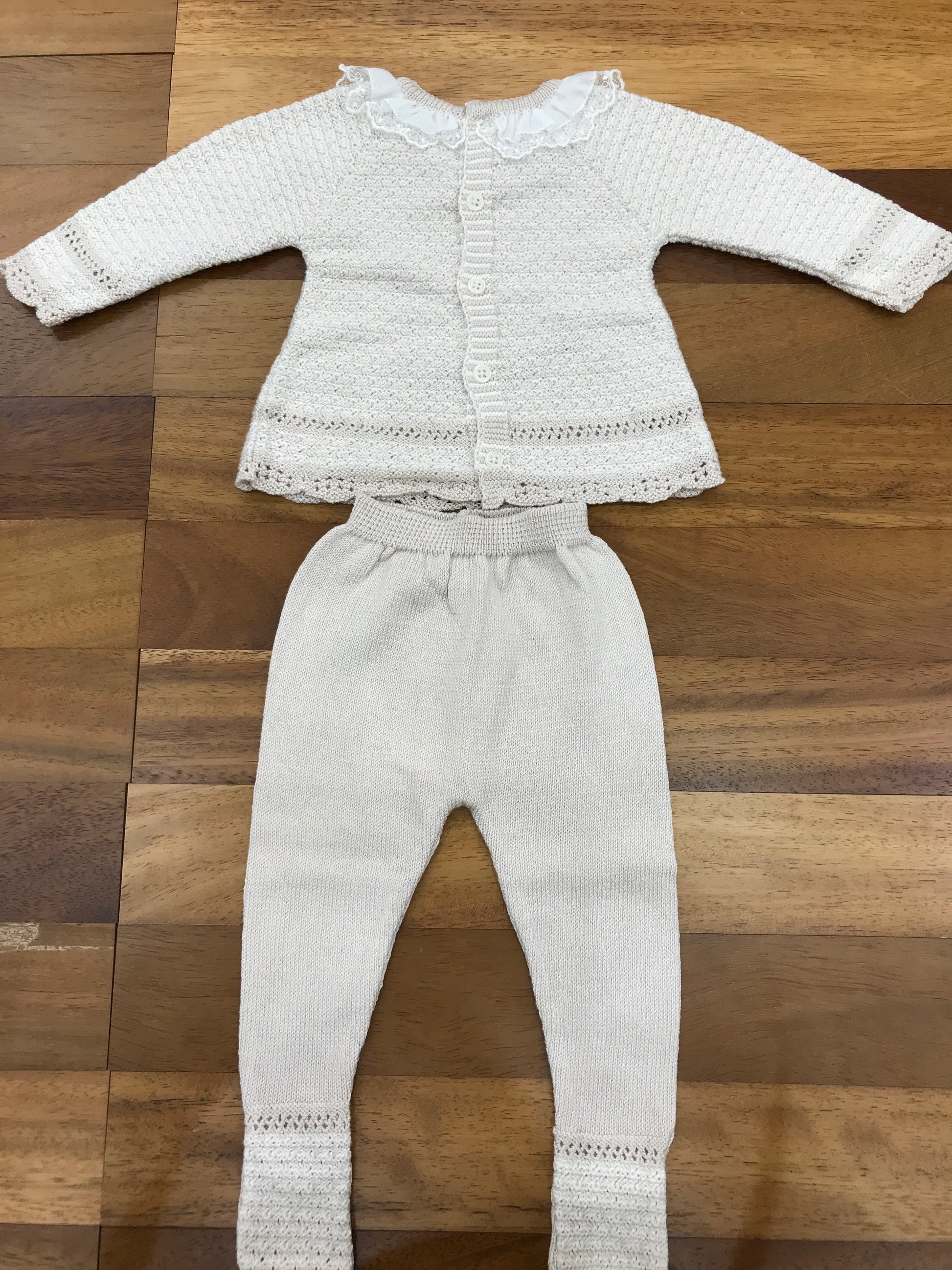 Questa tutina due pezzi di Paz Rodriguez in lana è dotata di piedini integrati e presenta un elegante collo ricamato, ideale per garantire comfort e stile ai più piccoli.