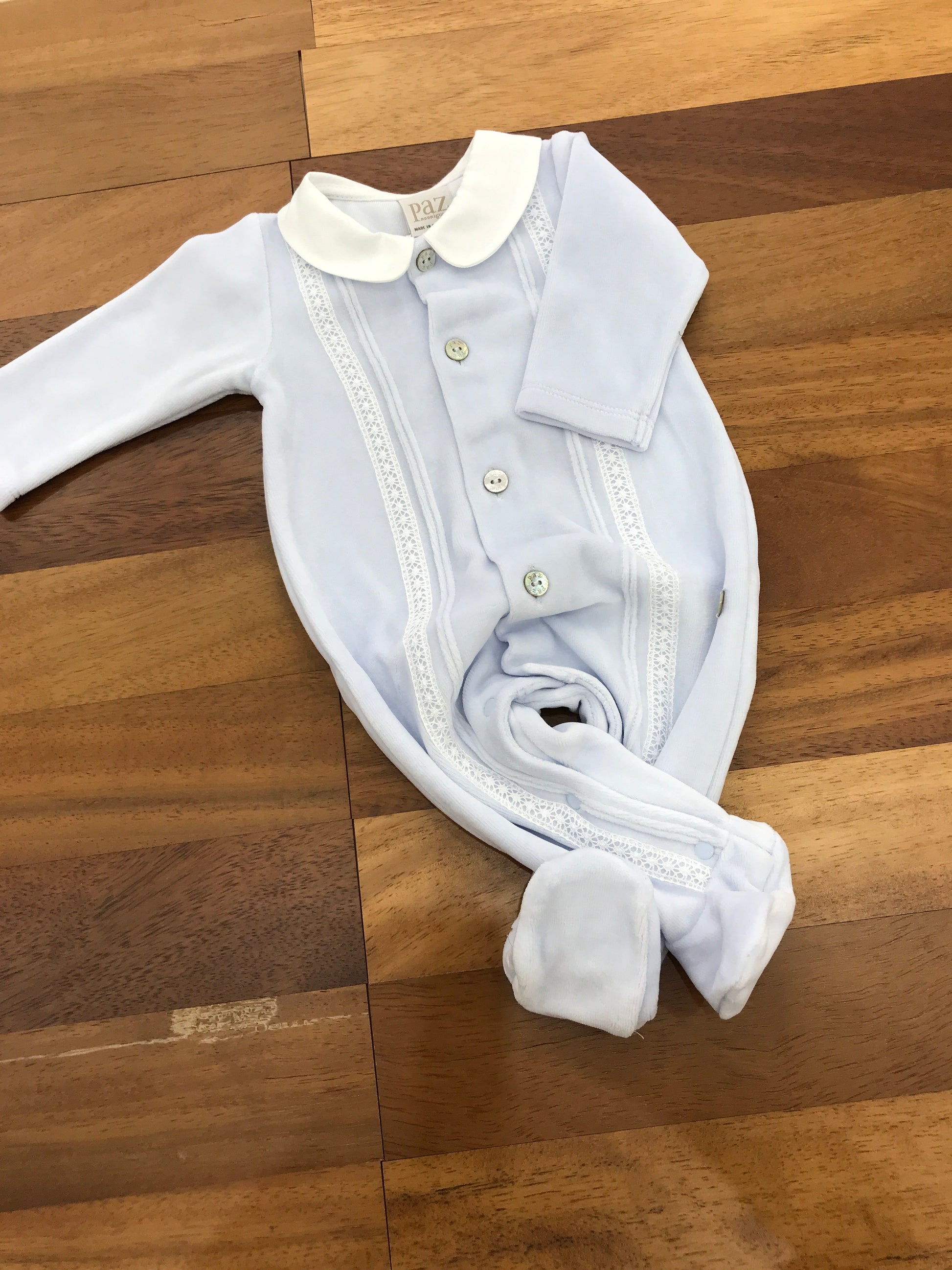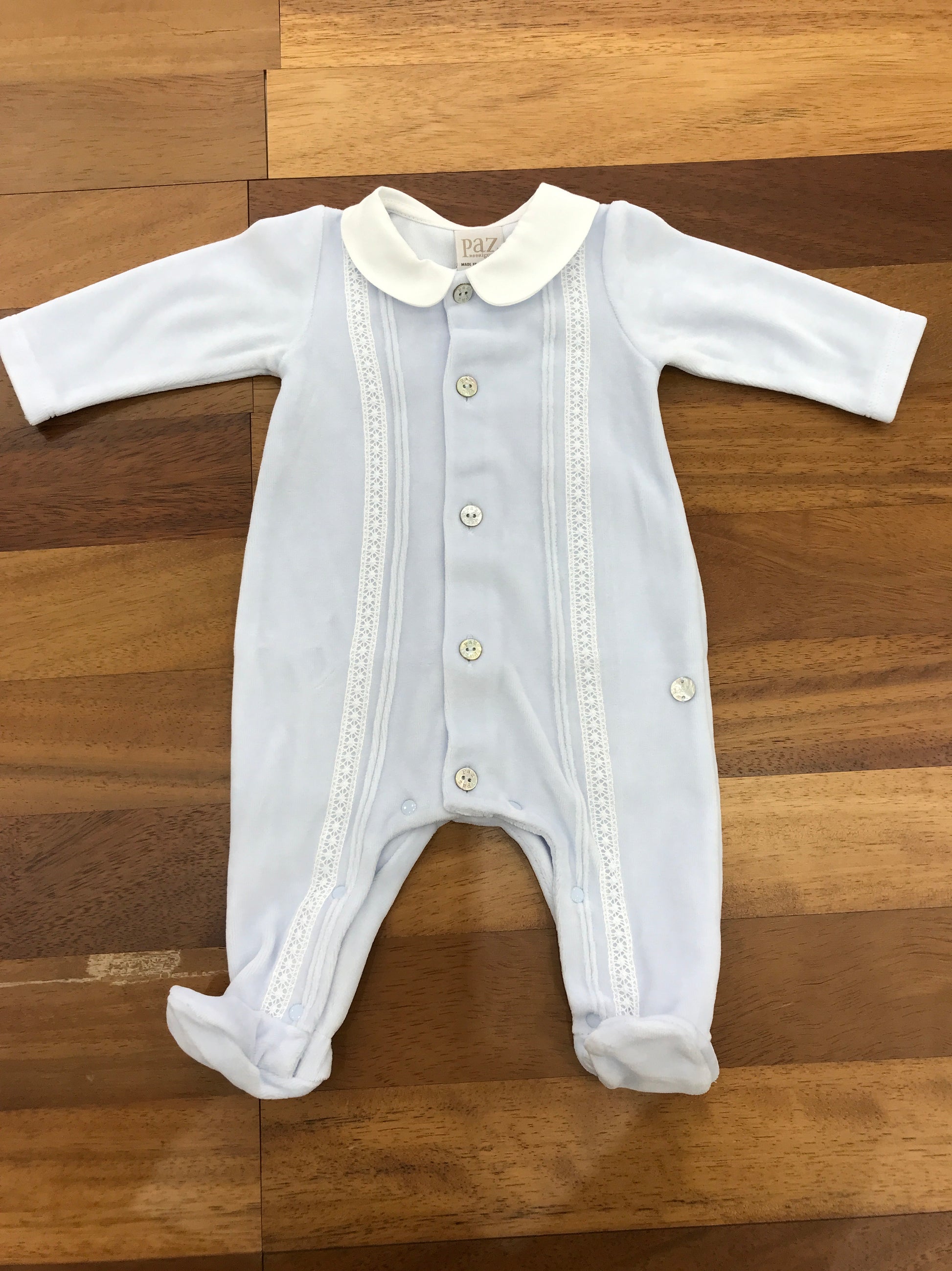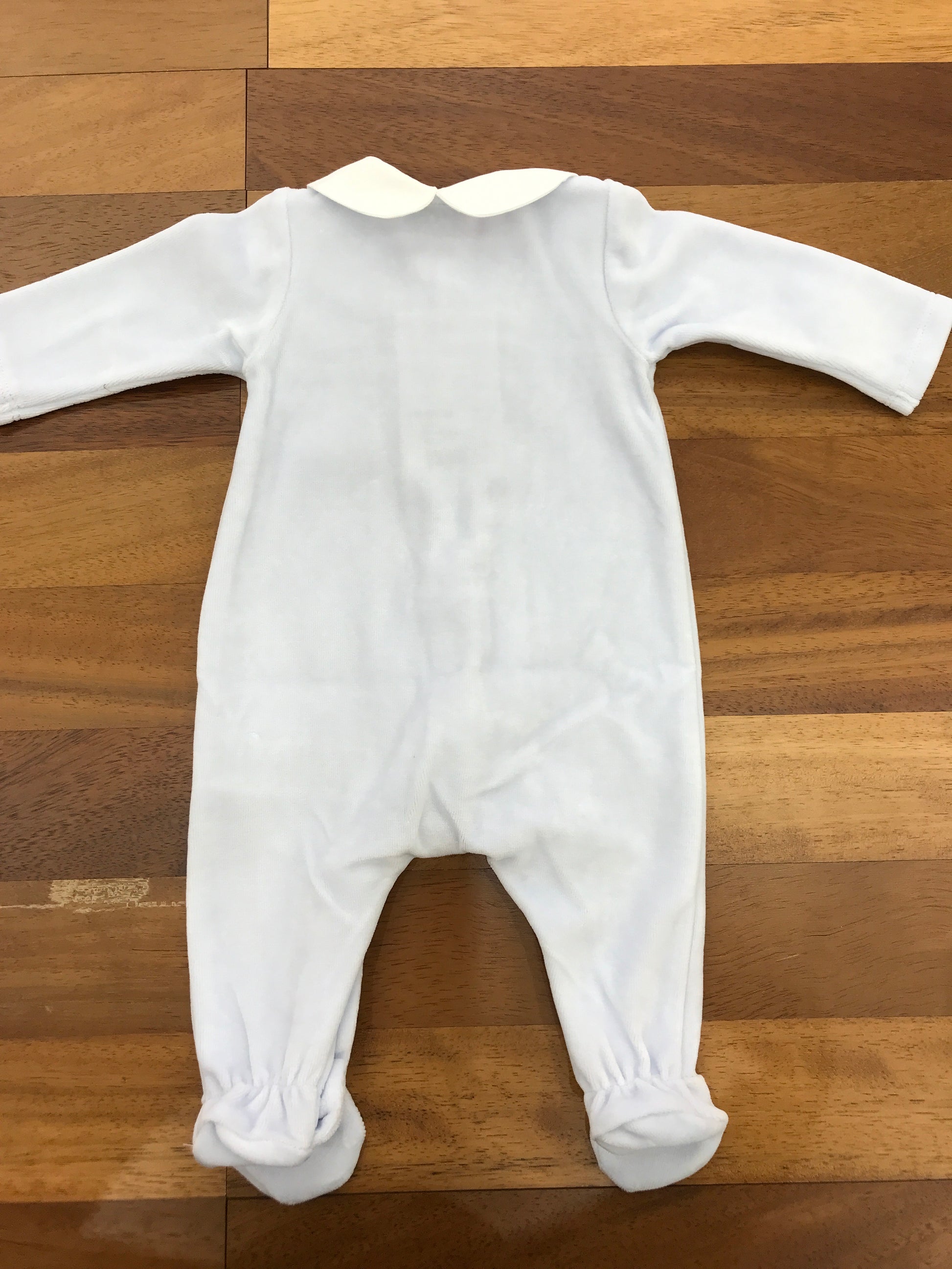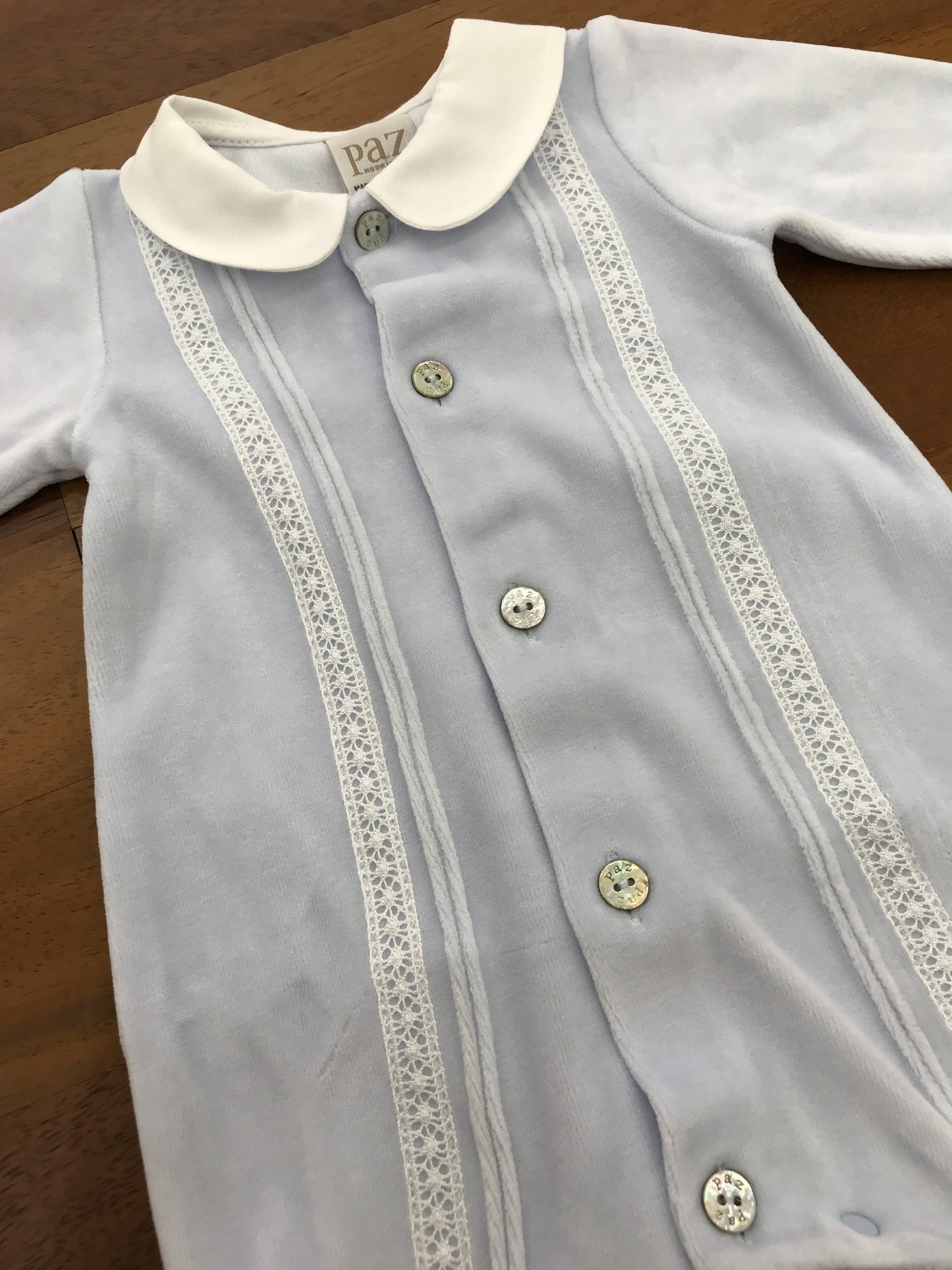 Questa tutina in ciniglia, completa di piedini e colletto, è impreziosita da un elegante merletto ricamato lungo i lati. Il design combina morbidezza e comfort con dettagli raffinati, offrendo un capo ideale per garantire calore e stile ai più piccoli. La scelta dei materiali assicura una vestibilità confortevole, mentre il merletto aggiunge un tocco di classe senza rinunciare alla praticità.