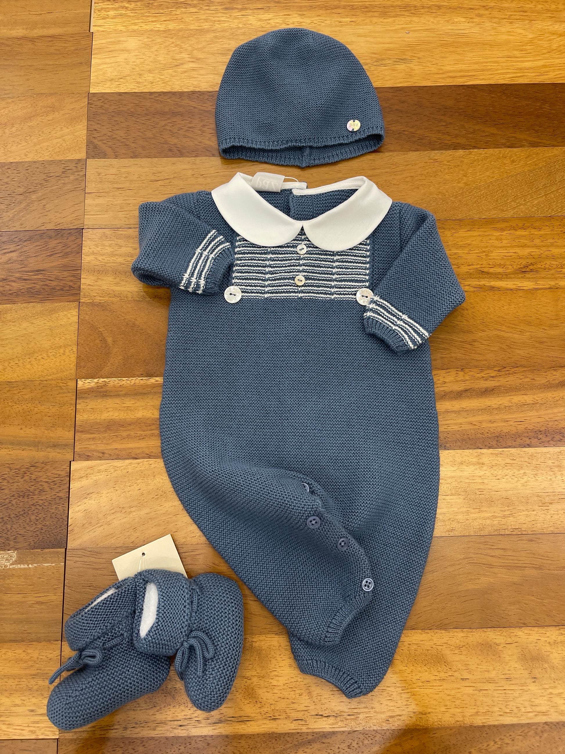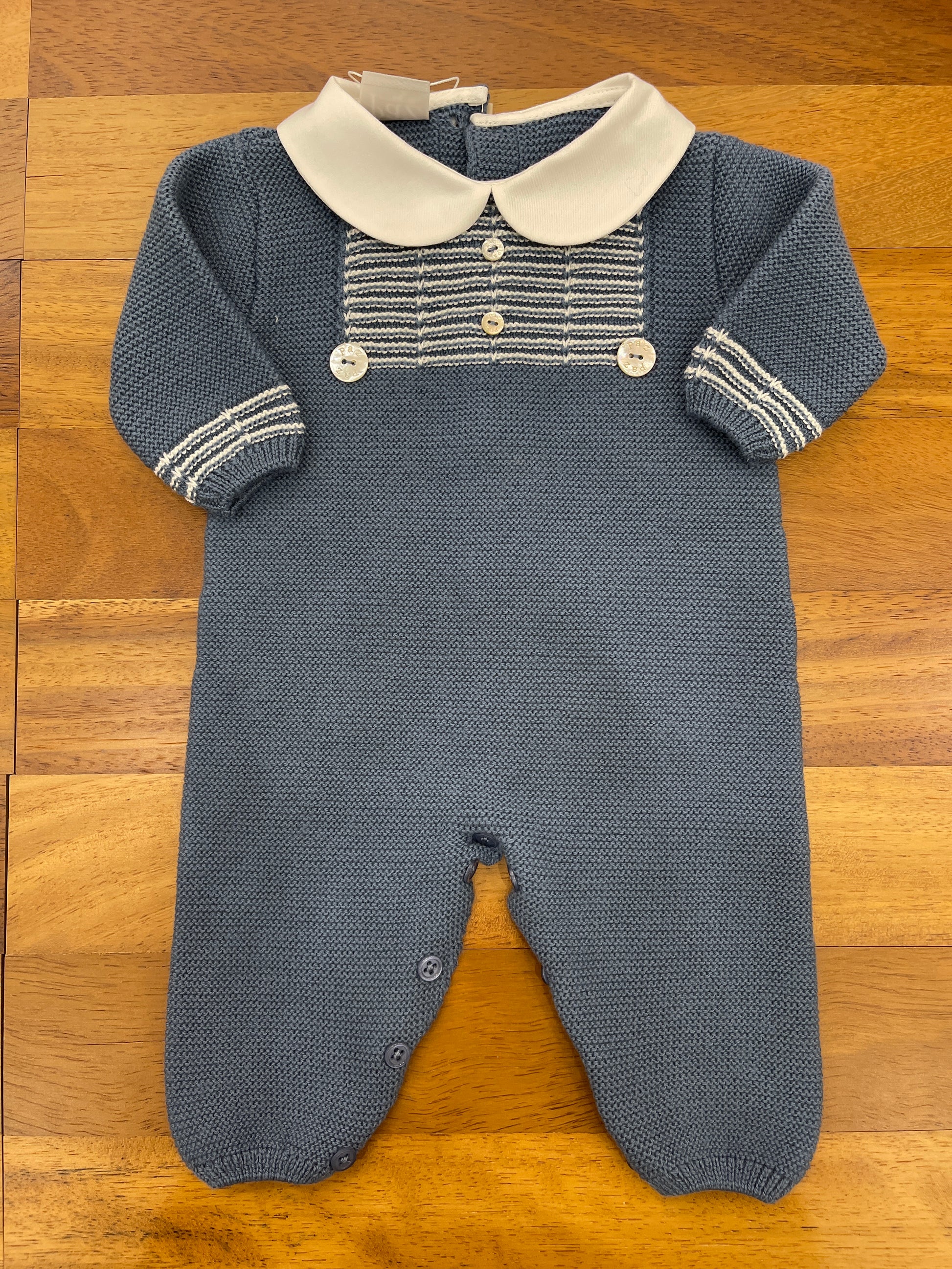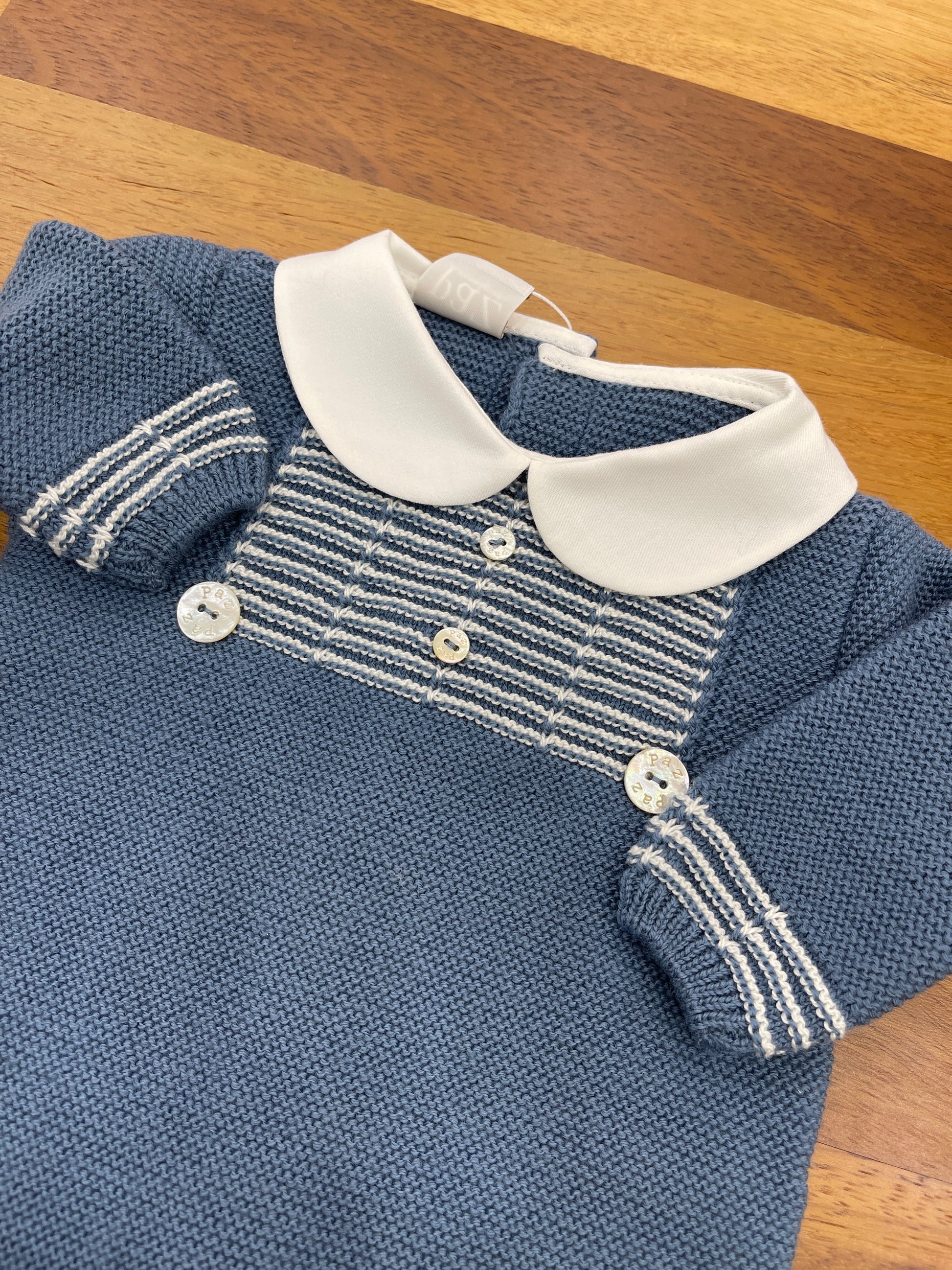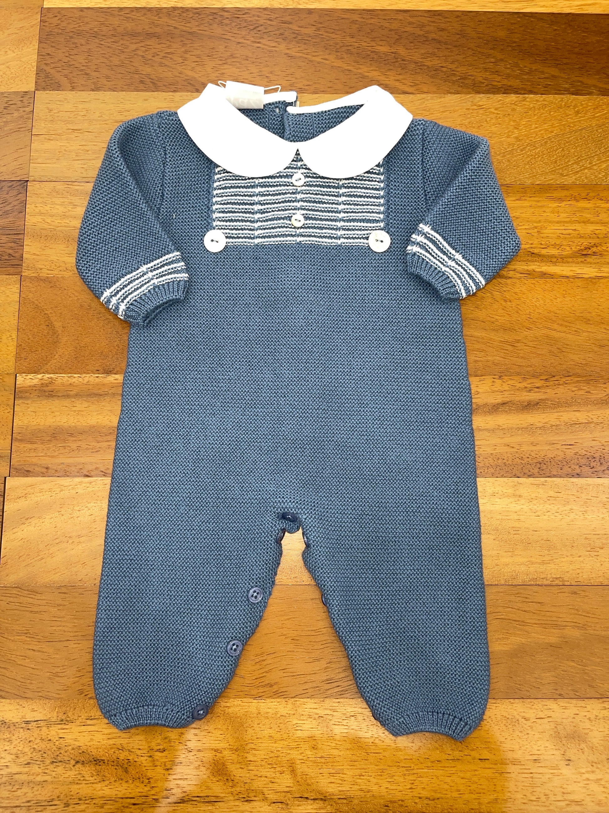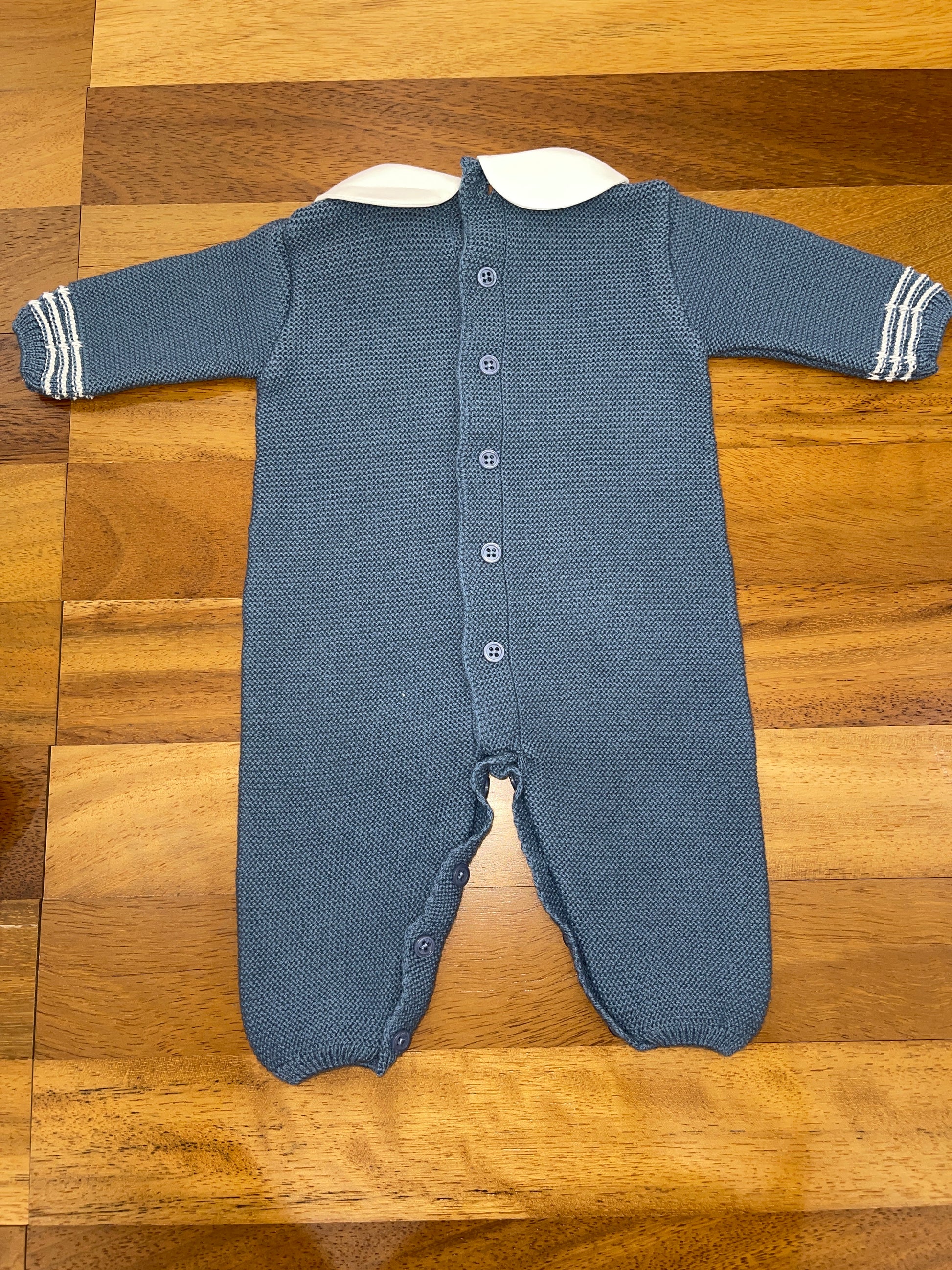 Tutina completa caratterizzata da un collo rotondo e da un motivo intrecciato bicolore sulla parte frontale.