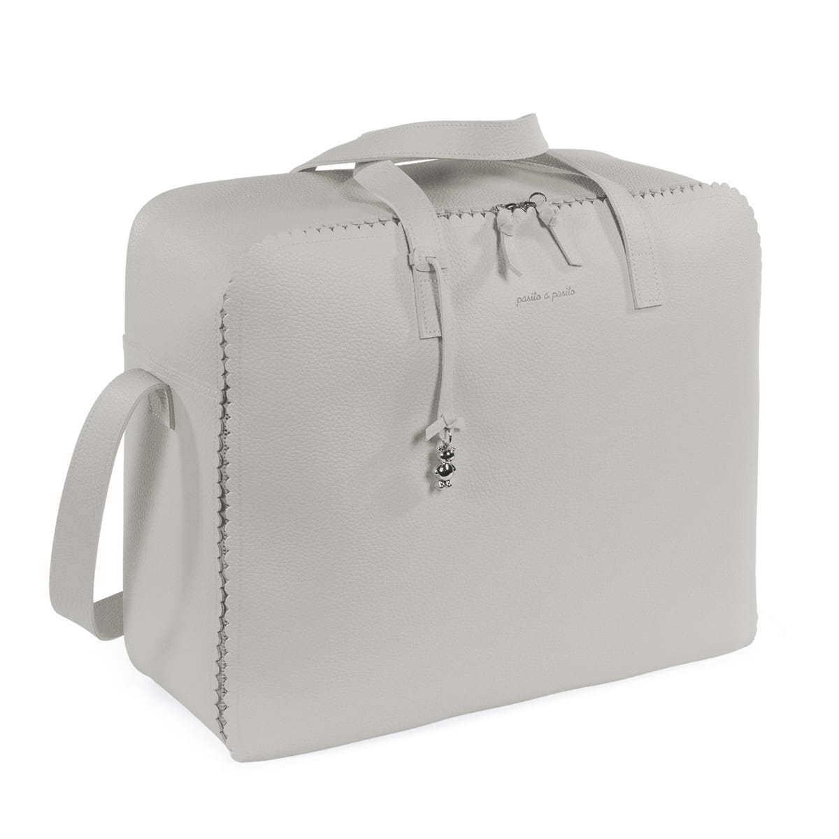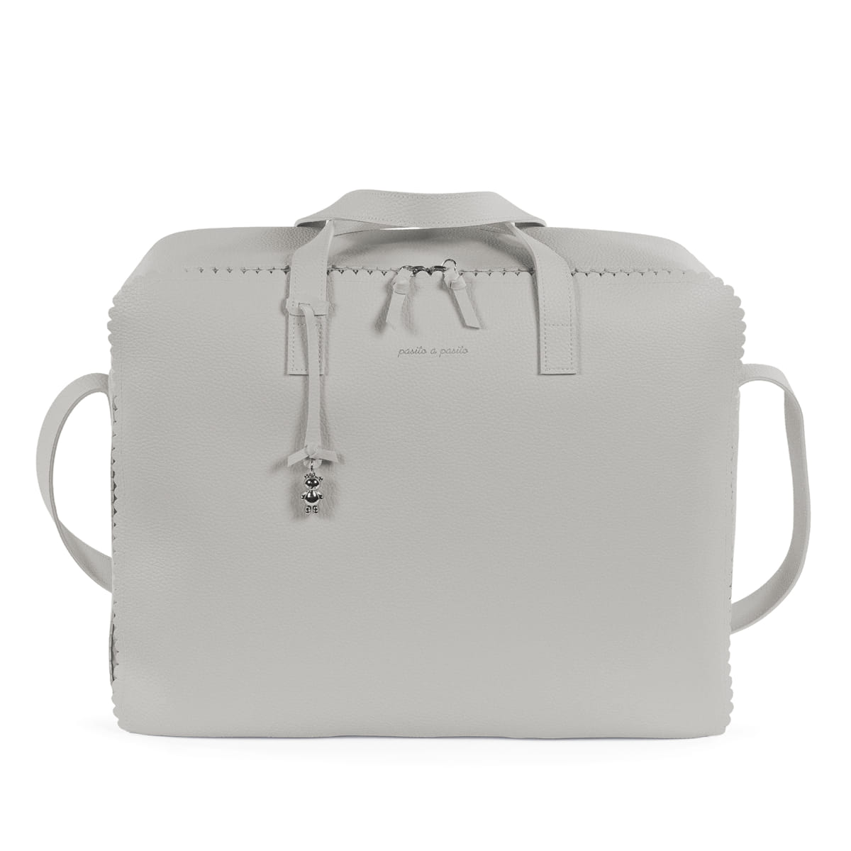 La valigetta per neonati Icon Smoke di Pasito a Pasito è la borsa perfetta per l’ospedale/clinica, un modello unico e alla moda appositamente progettato per te, il papà, e il bambino. È realizzato in ecopelle resistente e morbida. La sua forma rettangolare offre comfort per coprire tutte le tue esigenze (pigiama o accessori) durante il giorno del parto del bambino. È un design semplice, moderno e pratico che offre ampio spazio per trasportare molte cose ed ha un’apertura comoda per facilitare la ricerca di ciò che hai riposto. Viene fornito con una maniglia lunga da appendere sulla spalla e due maniglie corte per il trasporto a mano, se preferito. Finiture di alta qualità. La valigetta ospedaliera è dotata di fodera interna con elastici per mantenere i vestiti e si chiude in modo sicuro con una cerniera bidirezionale che consente di aprire completamente il coperchio. Realizzato con materiali di alta qualità, privi di coloranti azoici, ftalati e sostanze nocive per la salute. Inoltre, può essere lavato a mano o in lavatrice a temperature fino a 30º. I prodotti per bambini di Pasito a Pasito hanno un design molto diverso dagli altri. Le loro collezioni sono caratterizzate da un lavoro meticoloso, sempre progettato da un punto di vista pratico. Utilizzano materiali di alta qualità per enfatizzare l’eleganza e l’armonia in ciascuno dei loro pezzi. I nostri modelli sono esclusivi e hanno uno stile inconfondibile, progettato per le moderne mamme che hanno buon gusto e apprezzano i dettagli tanto quanto noi. Specifiche: Materiali: Ecopelle. Colore: Grigio. Misure: 44X36X16 cm.