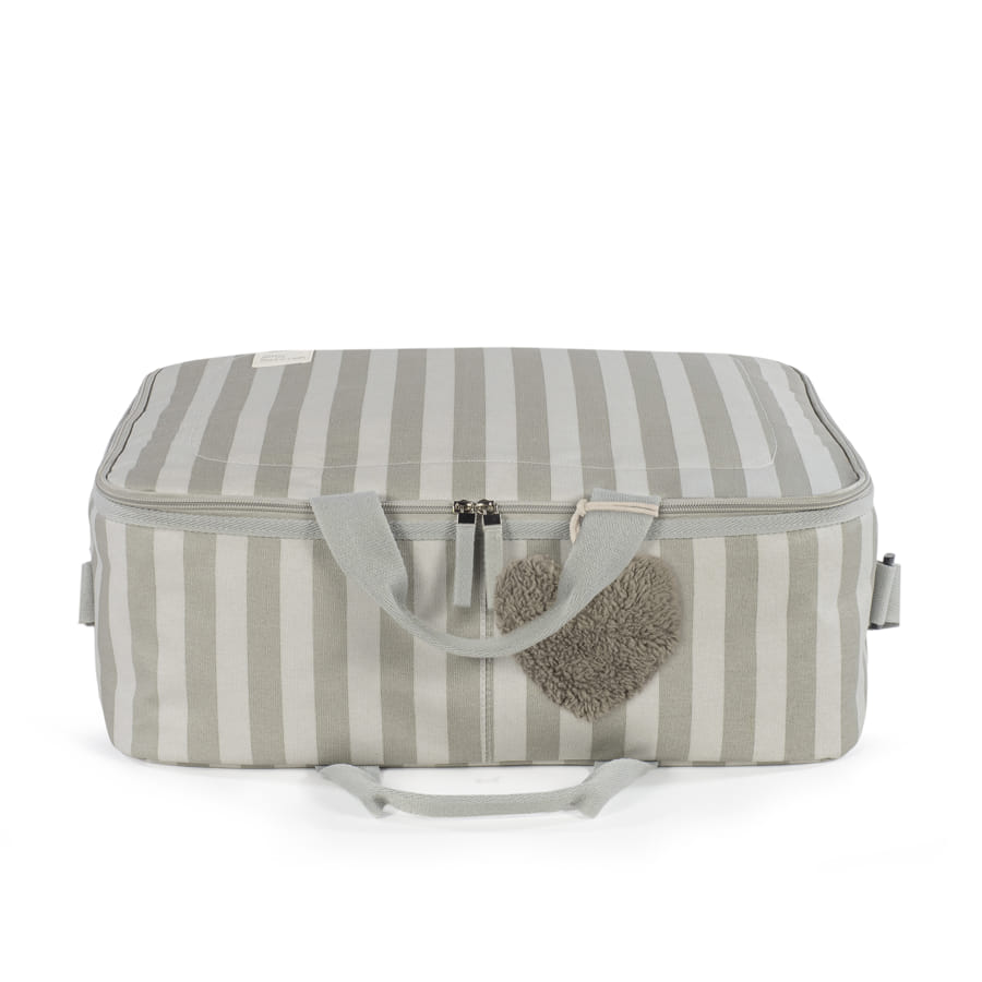 La valigia per neonati Sintra a righe verde è una borsa pensata appositamente per il momento più importante della gravidanza, ovvero l’arrivo del bambino. Valigia pensata per trasportare tutto il necessario per voi, per il papà e per il bambino. Questa valigia per neonati è il modello perfetto per contenere tutto ciò che non può mancare in questo giorno speciale. È comoda, leggera e maneggevole, con dimensioni rettangolari e una pratica apertura per coprire tutte le esigenze. Ha una sicura chiusura a zip a due vie per una facile apertura, una lunga tracolla e manici corti per il trasporto. Lo scomparto interno è foderato in tinta con gli elastici per contenere i vestiti e tenere tutto a posto. Include un ciondolo a forma di stella su cui è possibile ricamare il nome del bambino per personalizzare la borsa. Alta qualità e stile. Realizzata in materiale resistente e facile da pulire a mano o in lavatrice a 30°C. Walking Mum protegge il vostro bambino utilizzando i migliori tessuti, privi di coloranti azoici e di sostanze nocive per la salute. La nostra collezione Walking Mum mantiene tutta la qualità del marchio Pasito a Pasito ma con una particolare impronta di stile urbano e moderno che non passa inosservato, per vestire diversamente le passeggiate con il vostro bambino. Le borse premaman di questa linea sono più sportive e pratiche, pensate appositamente per le mamme e i papà moderni che apprezzano i design più attuali e di tendenza senza trascurare la qualità e la funzionalità degli accessori che completano e rendono più confortevoli le passeggiate con i loro bambini. Specifiche: Materiali: 65% cotone /35% poliestere plastificato. Misure: 49X37X17 cm.