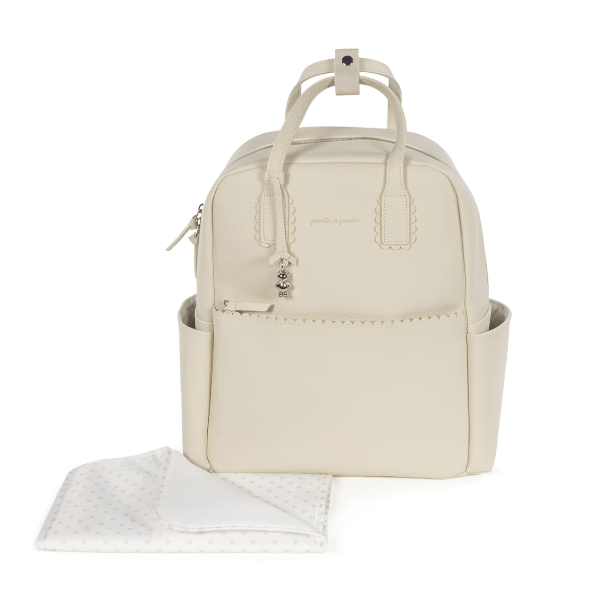 Il zaino Icon Cream in similpelle è la scelta perfetta per i genitori che desiderano combinare stile e praticità. Realizzato con materiali di alta qualità, questo zaino offre una soluzione durevole ed elegante per trasportare tutti gli oggetti essenziali del bambino. Realizzato in similpelle resistente e facile da pulire, ideale per l’uso quotidiano. Ampio scomparto principale, perfetto per riporre pannolini, vestiti, biberon e giocattoli. All’interno è dotato di una tasca termica per i biberon, una tasca laminata per i vestiti bagnati e una tasca per il fasciatoio, incluso. All’esterno c’è una tasca frontale con chiusura a zip per avere sempre a portata di mano l’essenziale, come il cellulare, le chiavi o tutto ciò che serve per uscire con il bambino senza dover usare la borsa. Dispone inoltre di due tasche laterali per bottiglie o biberon. È dotato di cinghie regolabili per essere trasportato come uno zaino, di cinghie per le mani e di due piccole maniglie per poterlo utilizzare appeso alla carrozzina del bambino. È dotato di una cinghia posteriore per agganciarlo alla valigia trolley. È realizzato con materiali privi di coloranti azoici, ftalati e sostanze nocive per la salute. Inoltre, può essere lavato a mano o in lavatrice a temperature fino a 30°. I prodotti per l’infanzia di Pasito a Pasito hanno un design molto diverso da tutti gli altri. Le loro collezioni sono caratterizzate da un lavoro dettagliato, sempre concepito da un punto di vista pratico. Utilizzano materiali di alta qualità per sottolineare l’eleganza e l’armonia di ogni loro pezzo. I nostri modelli sono esclusivi e dallo stile inconfondibile, pensati per le mamme moderne che amano il buon gusto e apprezzano i dettagli come noi. Specifiche: Materiali: Ecopelle. Colore: Beige. Misure: 35X38X16 cm.